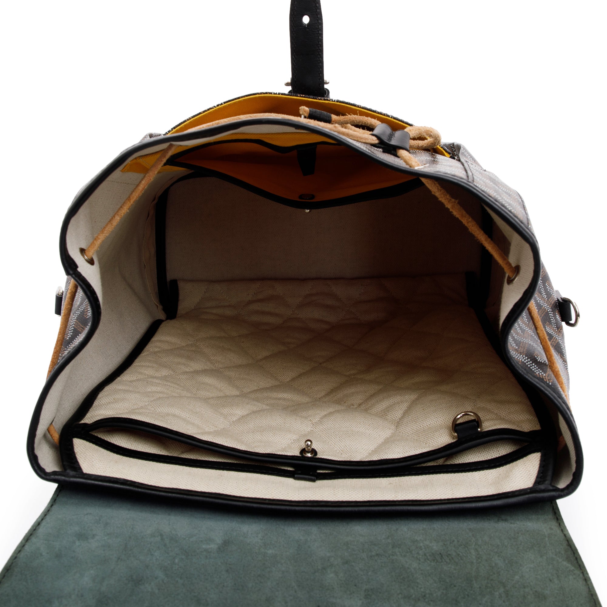 Condition: Good; some scratches and discoloration at exterior leather flap; some scuffing and wear at base and edges; slight scratches at flap underside; clean interior