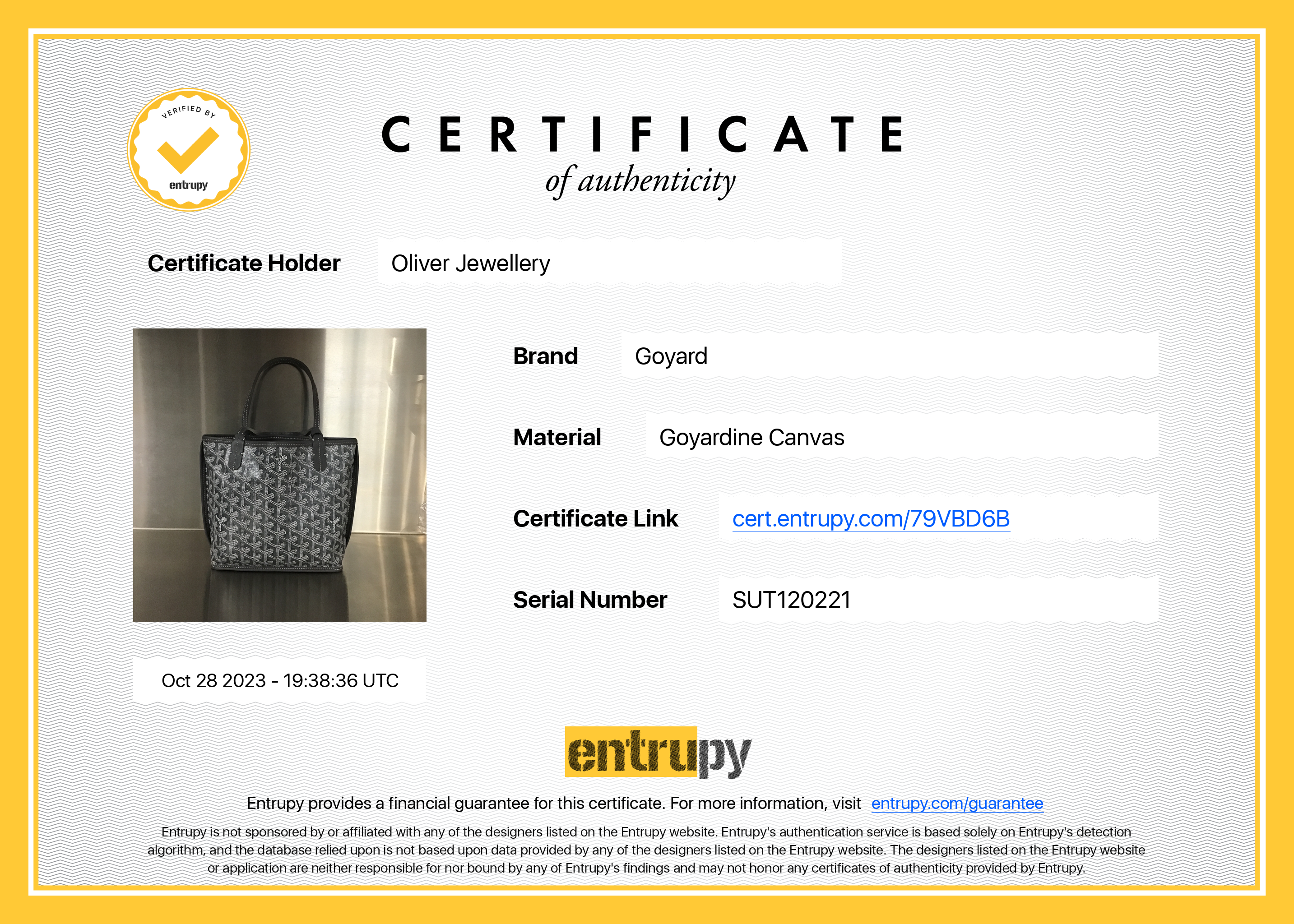 Dust Bag, Pouch, Entrupy Certificate of Authenticity