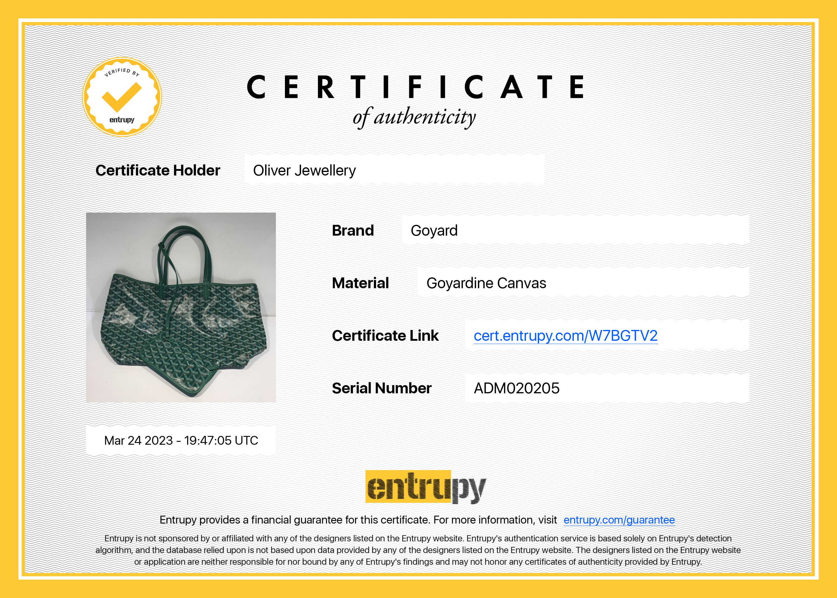 Included Items: Original Goyard Dust Bag and Entrupy Certificate of Authenticity #: W7BGTV2