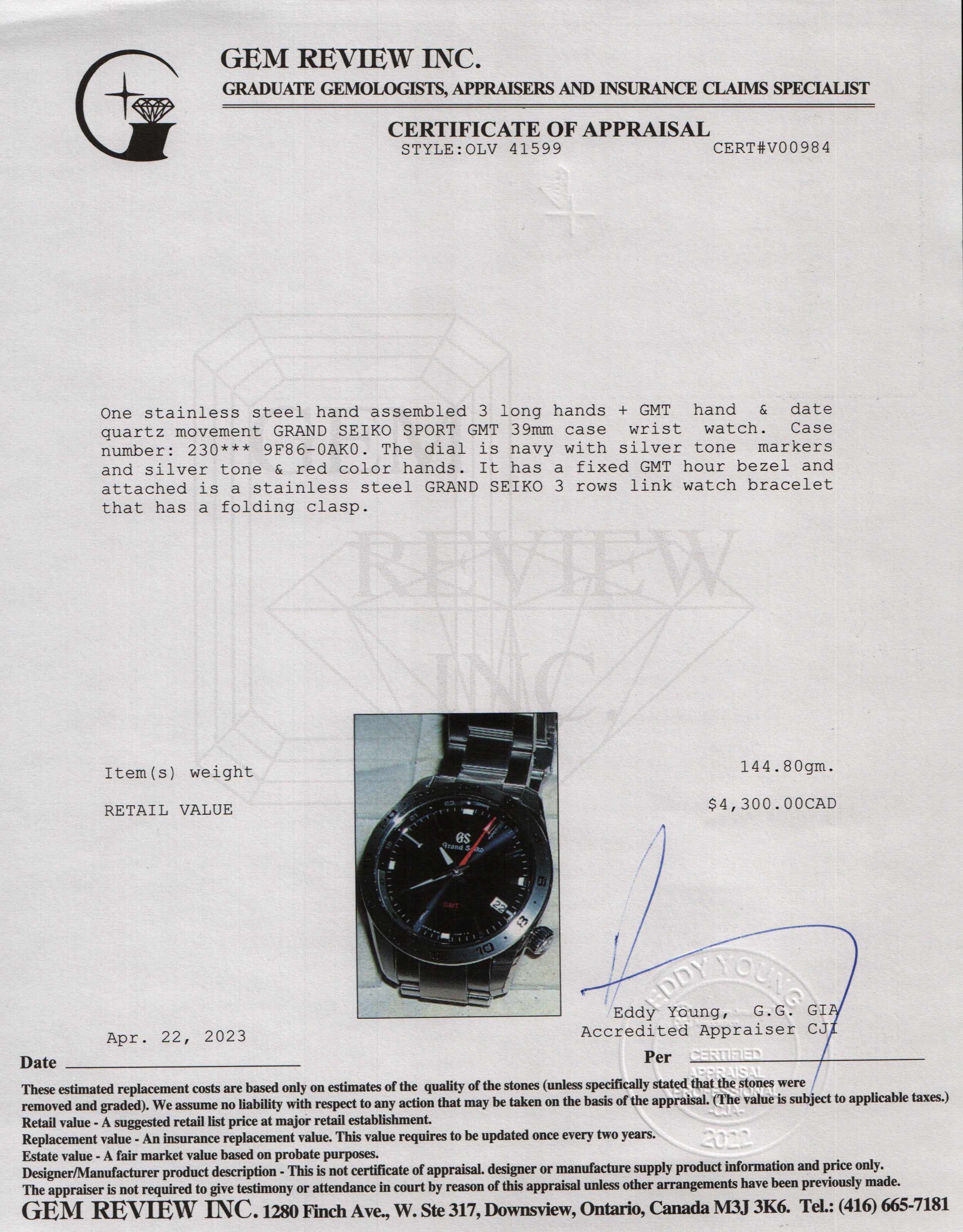 Included Items: Original Grand Seiko Box, Booklet, Card and Gem Review Appraisal