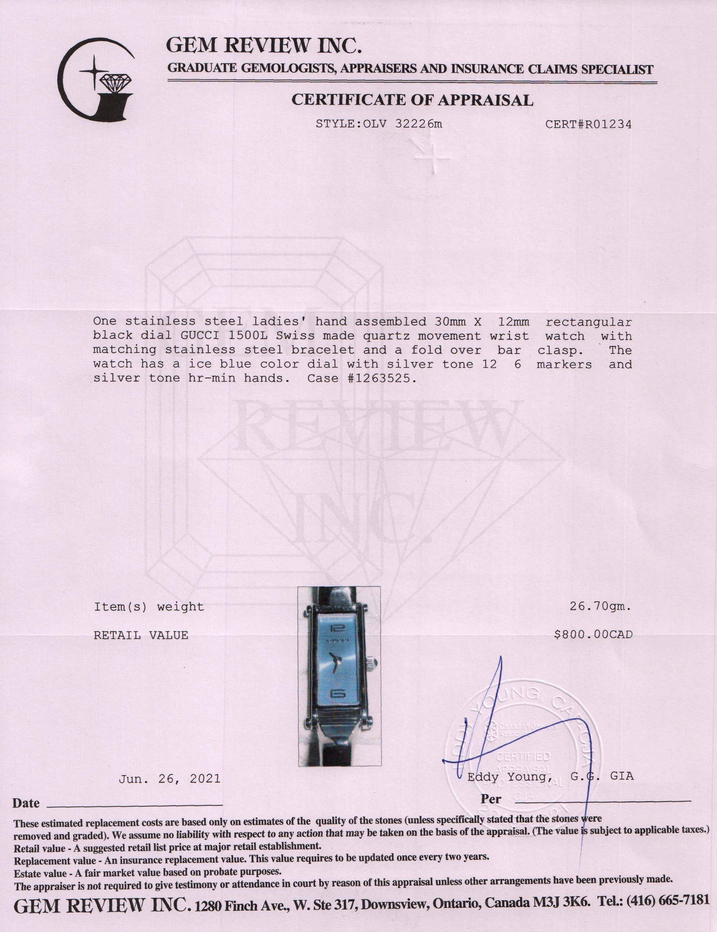 - Signature/Hallmarks: Gucci 1500L 1263525