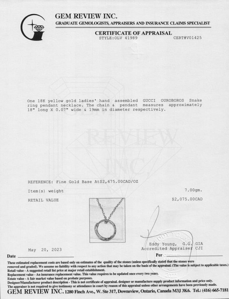 Gucci 18k Gold Ouroboros Snake Ring Pendant Necklace
