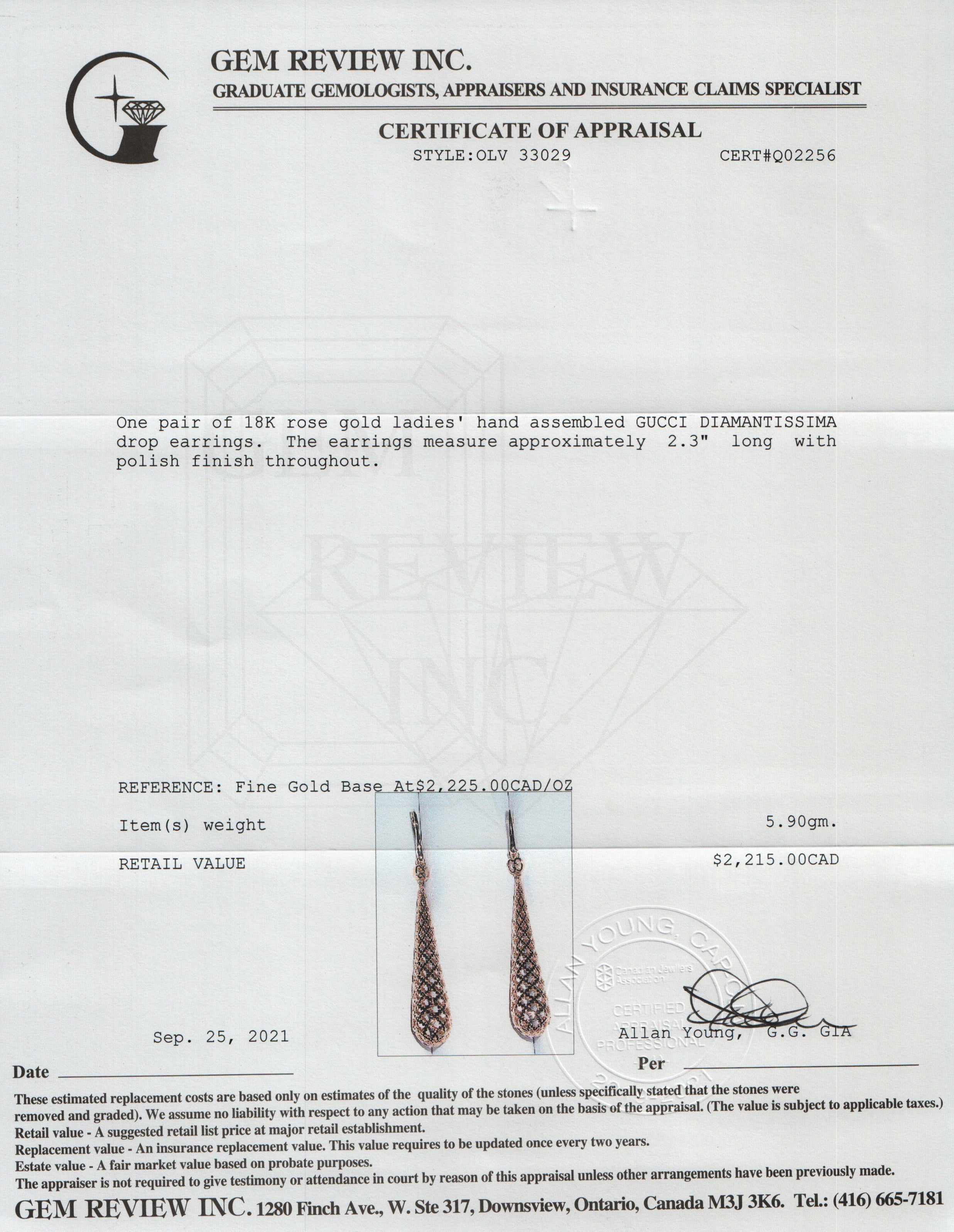 Gucci 18k Rose Gold Diamantissima Drop Earrings