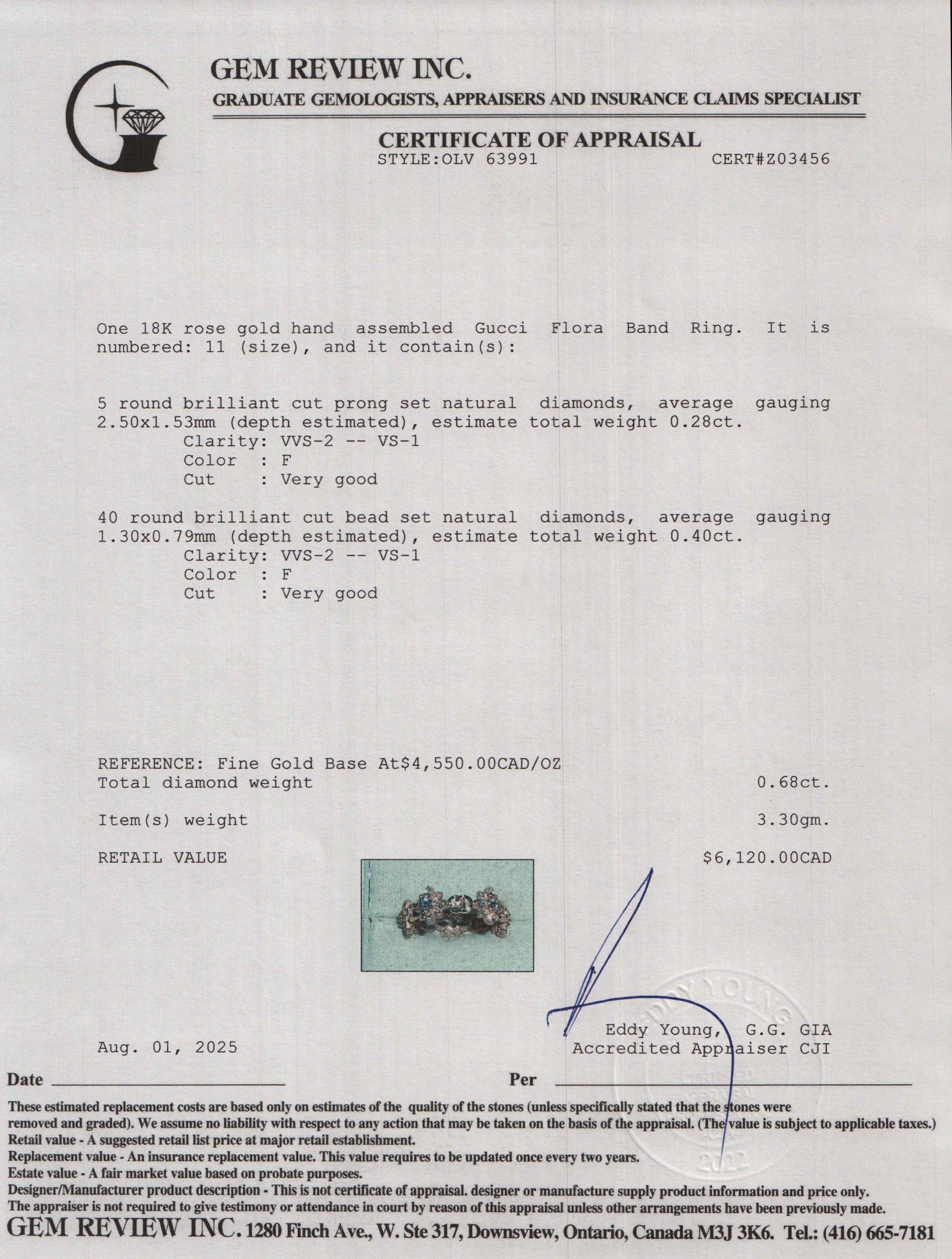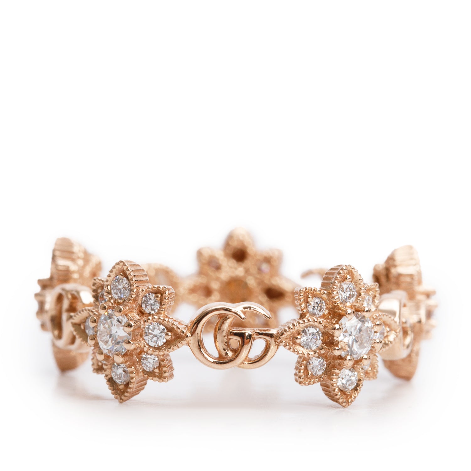 18k Rose Gold Diamond Flora Band Ring, Size 11 5.5 w/ Box