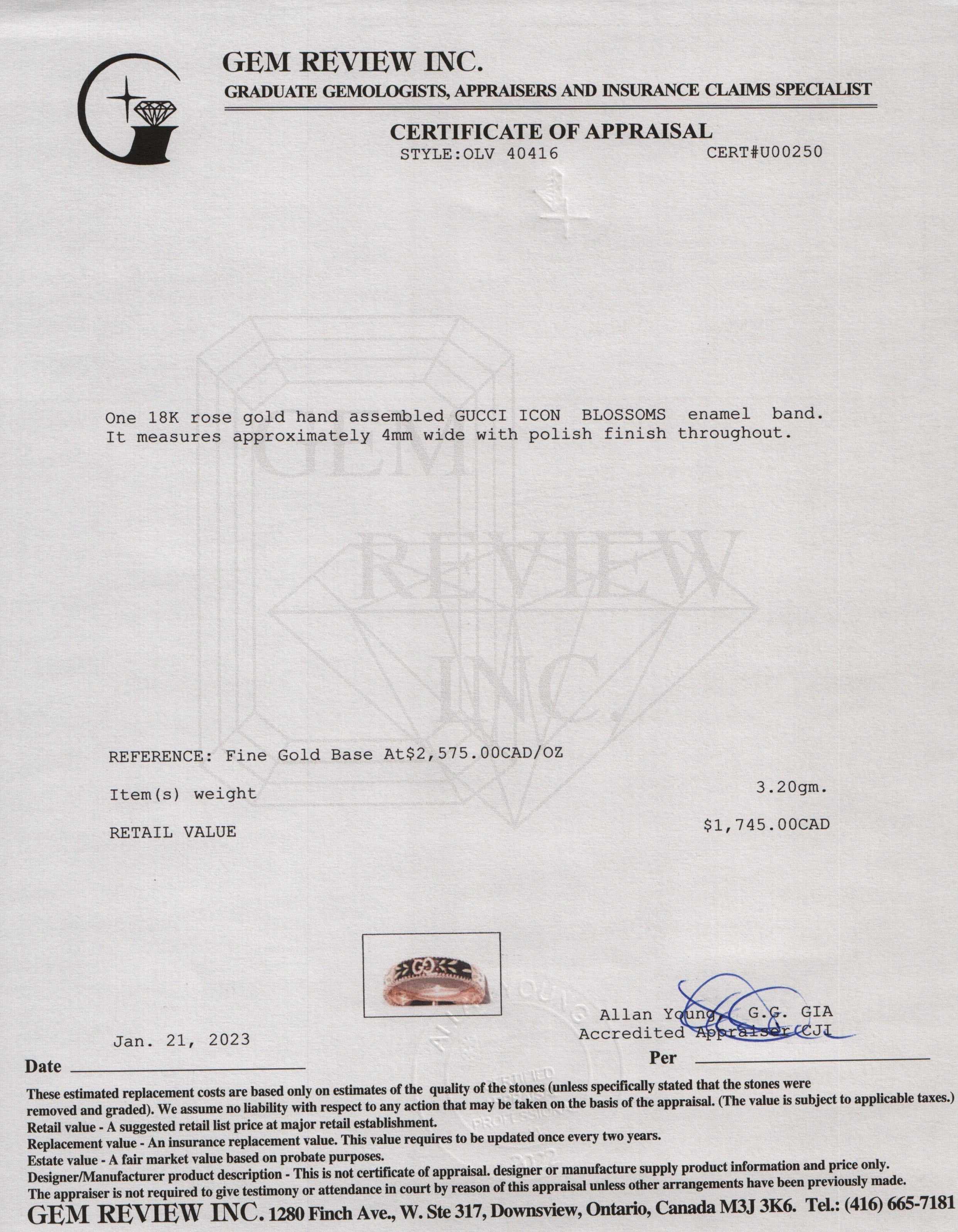 - Signature/Hallmarks: Gucci Made in Italy Icon Au750 12
