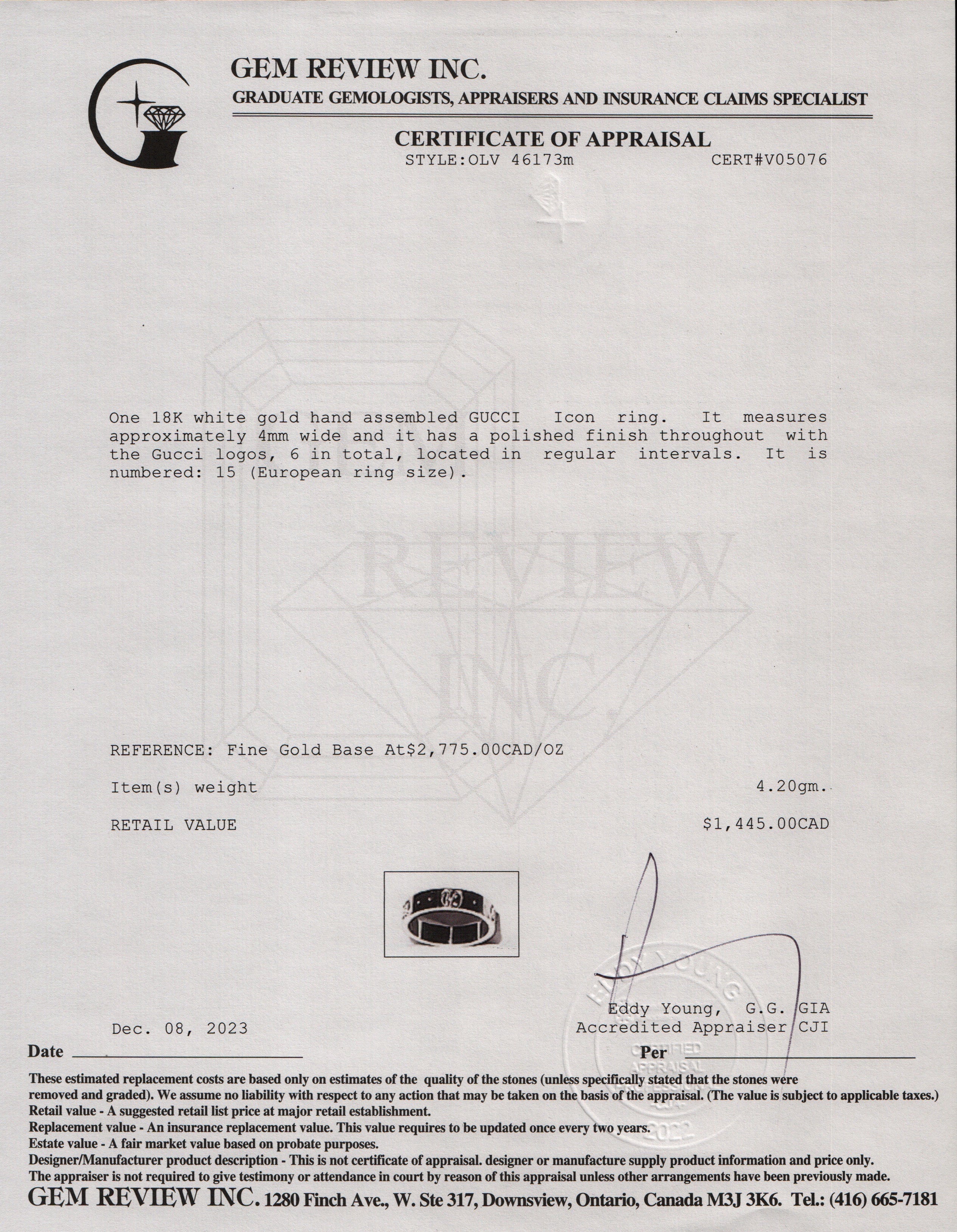 18k White Gold Icon Thin Band 4 MM Ring, Size 15 7 w/ Box