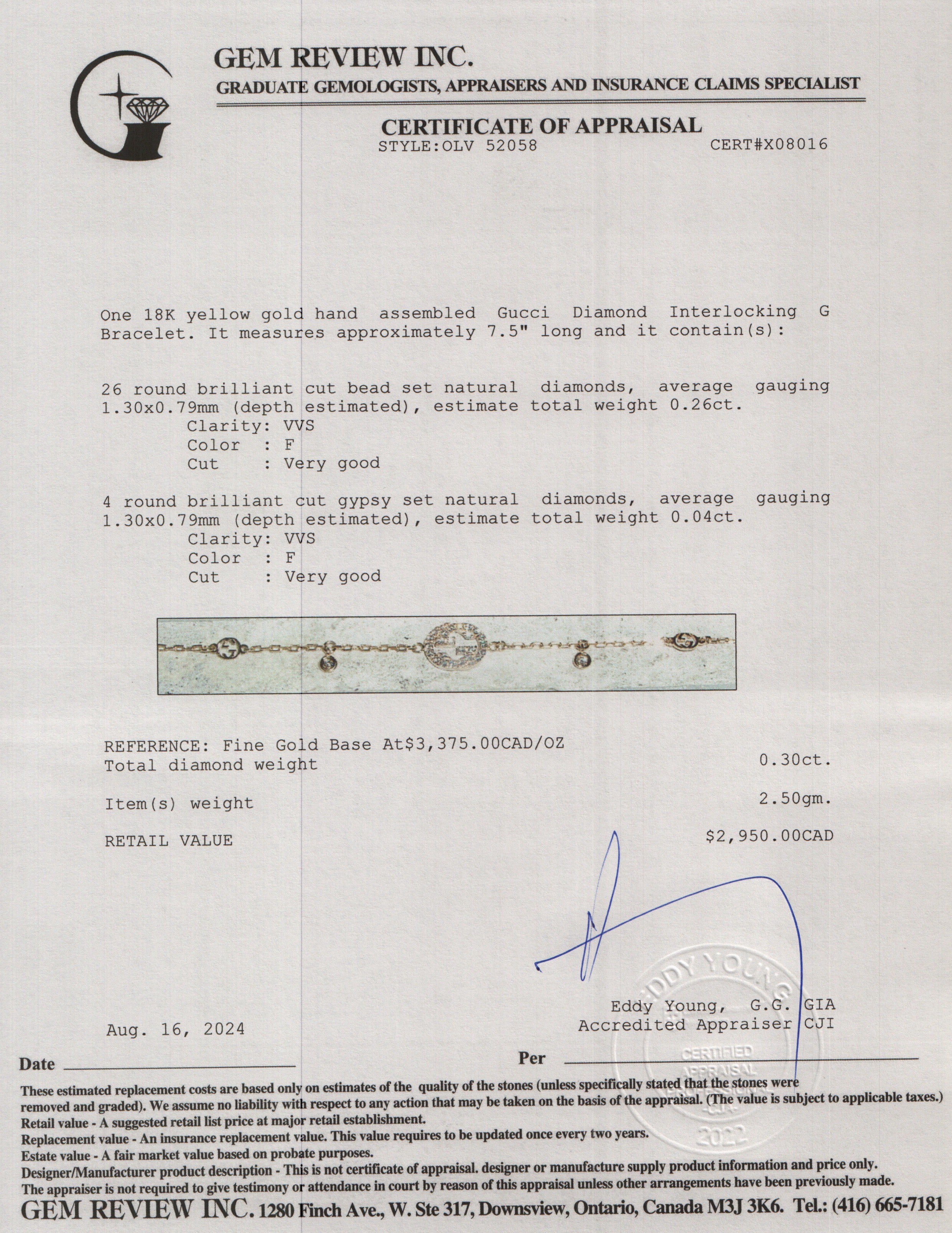 18k Yellow Gold Diamond Interlocking G Bracelet