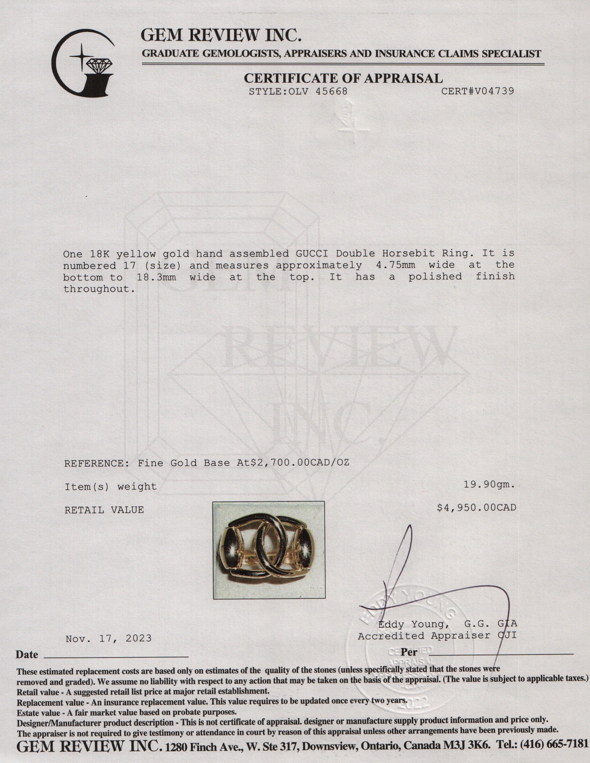 18k Yellow Gold Double Horsebit Ring, Size 17 6.5 w/ Box