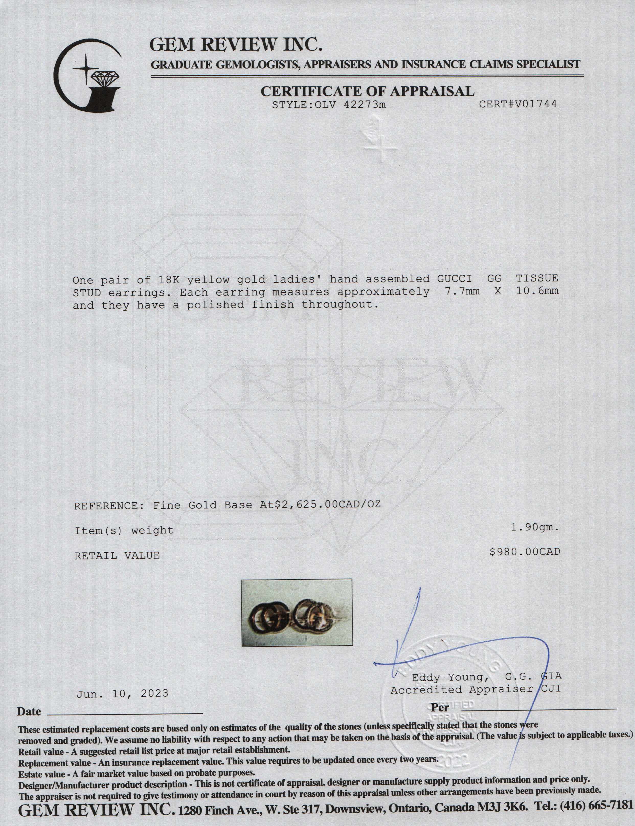 Gucci 18k Yellow Gold GG Tissue Stud Earrings