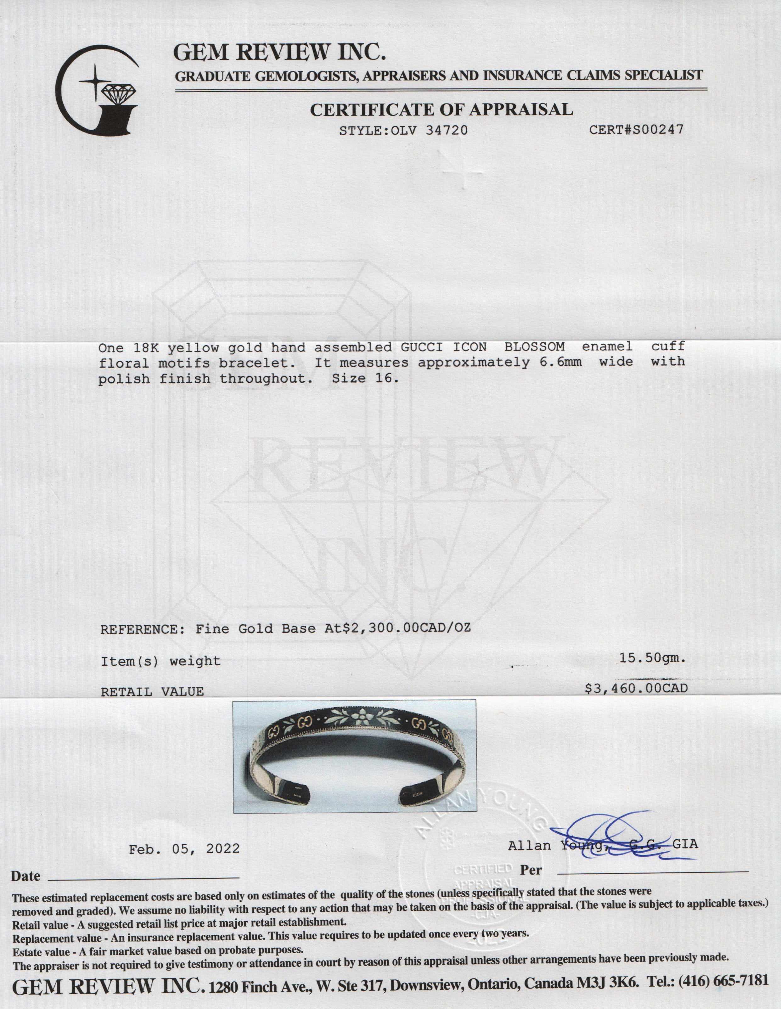 Gucci 18k Yellow Gold Icon Blossom Enamel Cuff Bracelet