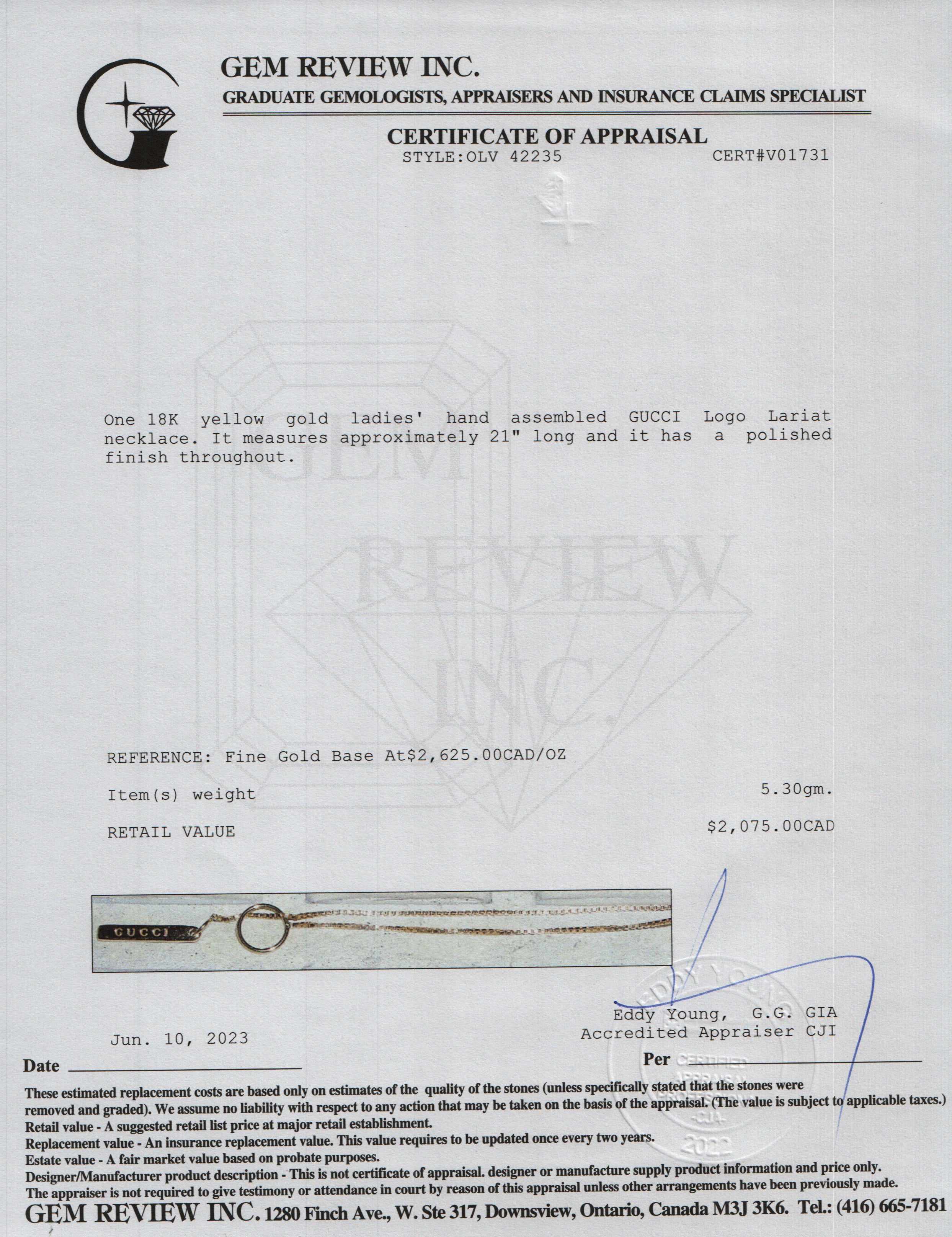 Gucci 18k Yellow Gold Logo Lariat Necklace