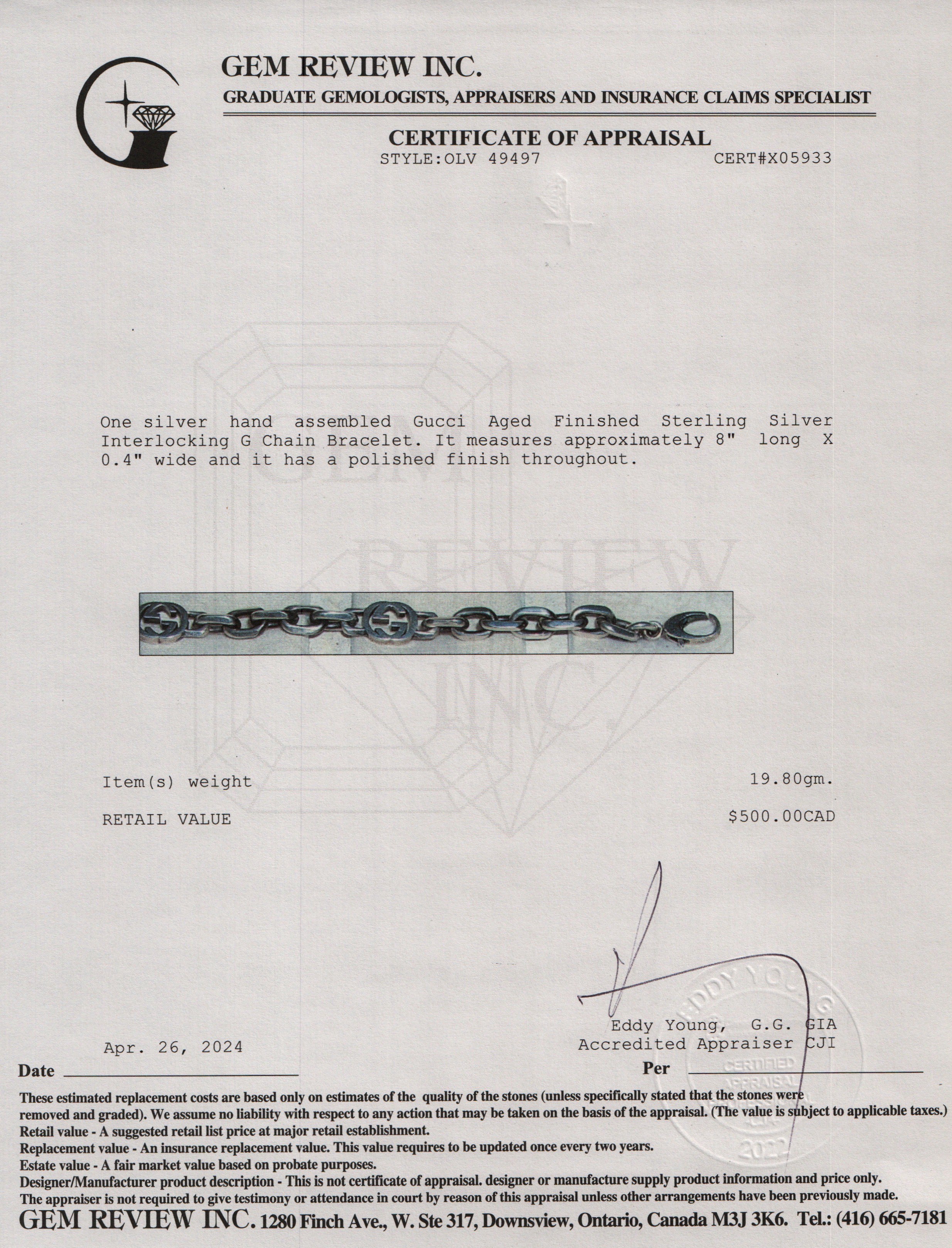 Aged Finished Sterling Silver Interlocking G Chain Bracelet w/ Box