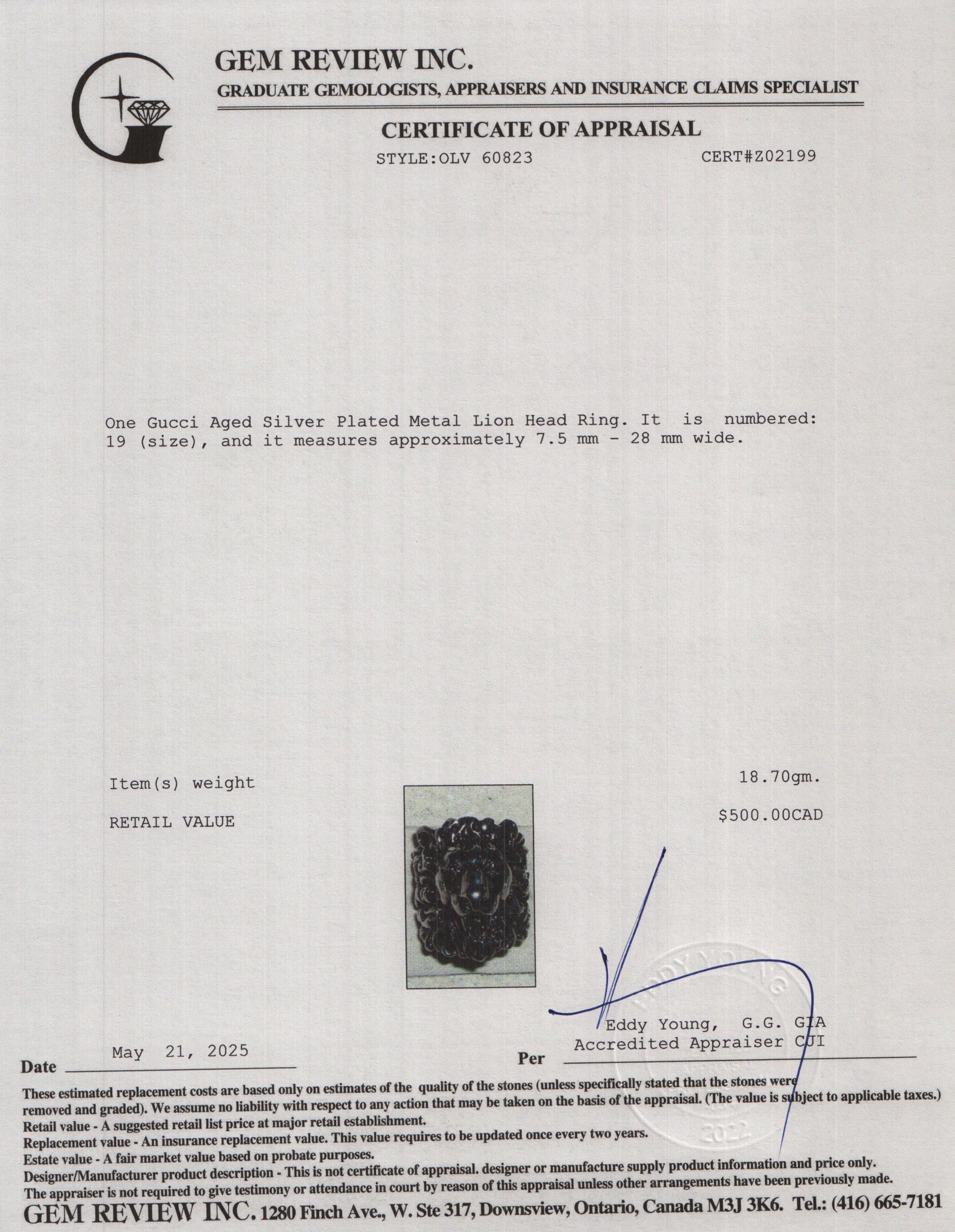 Aged Silver Plated Metal Lion Head Ring, Size 19 8.5 w/ Box