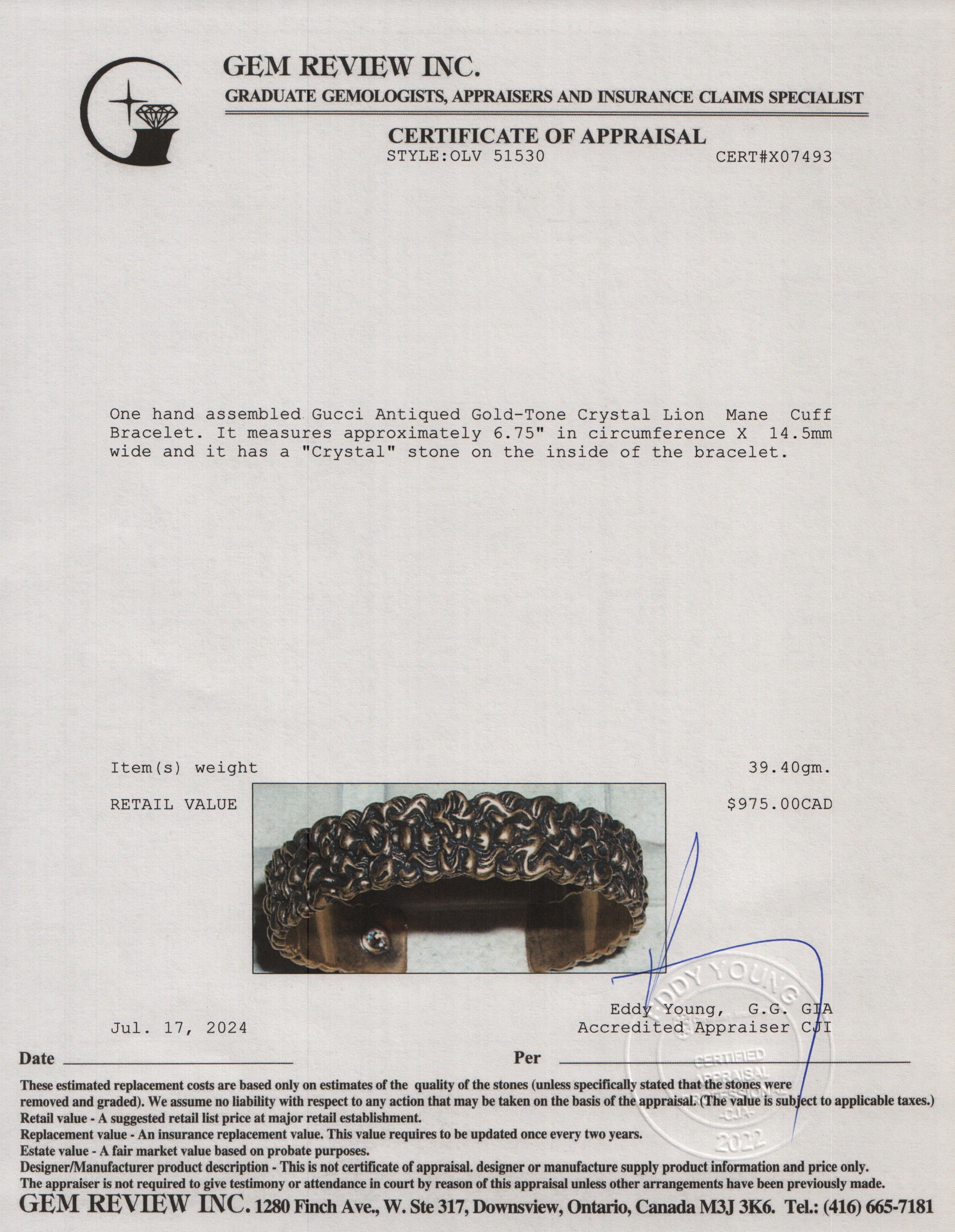 Antiqued Gold-Tone Crystal Lion Mane Cuff Bracelet