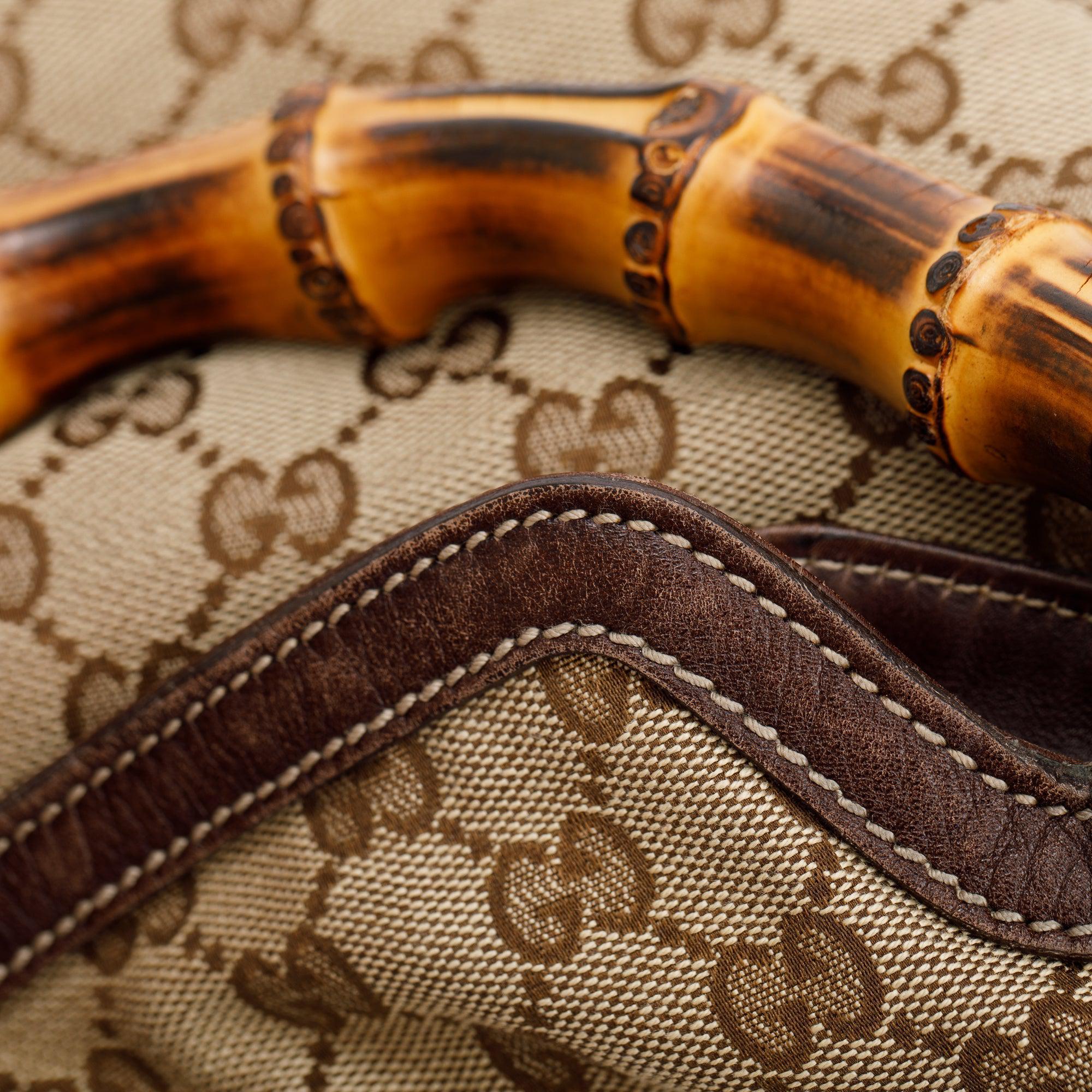 Beige GG Canvas Medium Peggy Bamboo Top Handle Bag w/ Strap