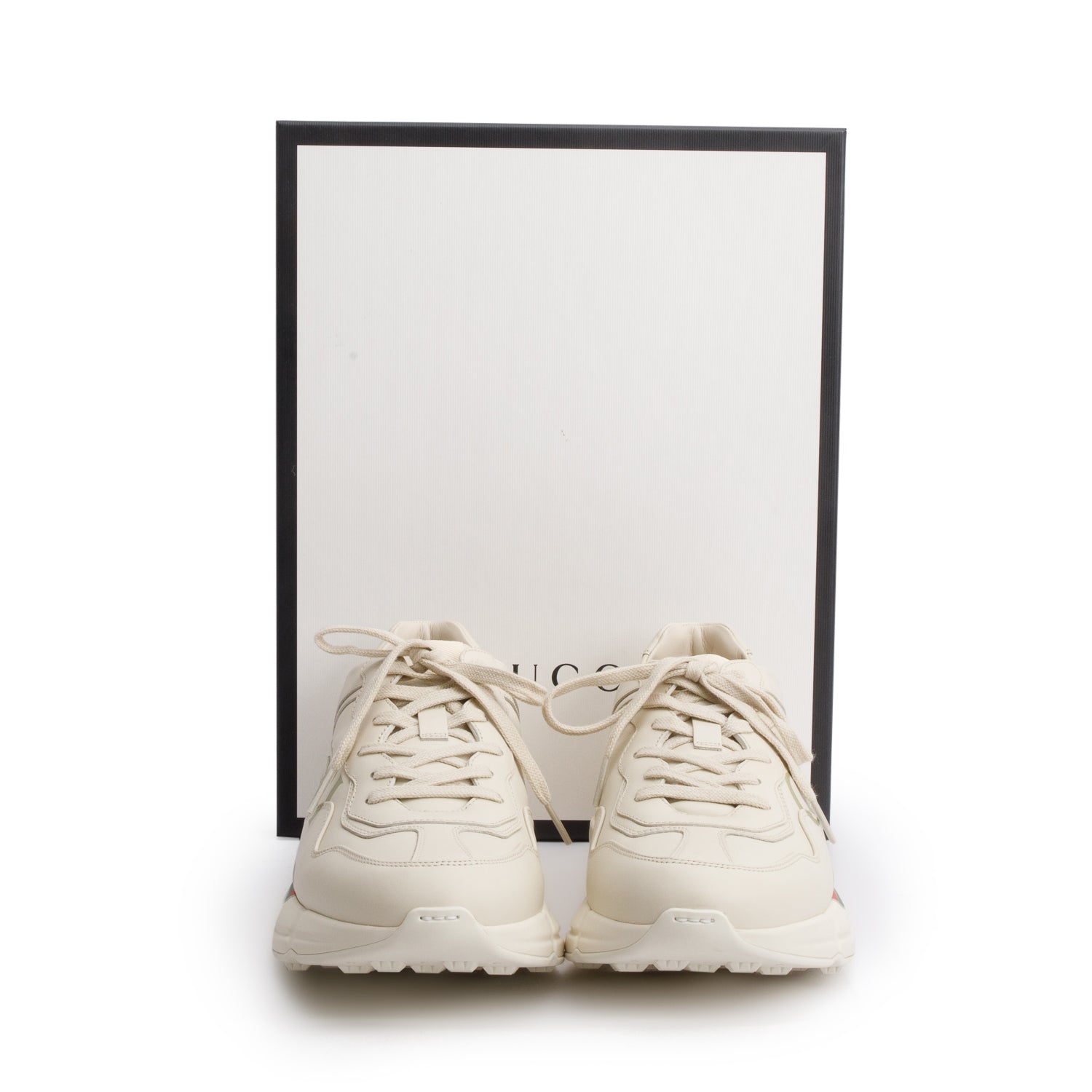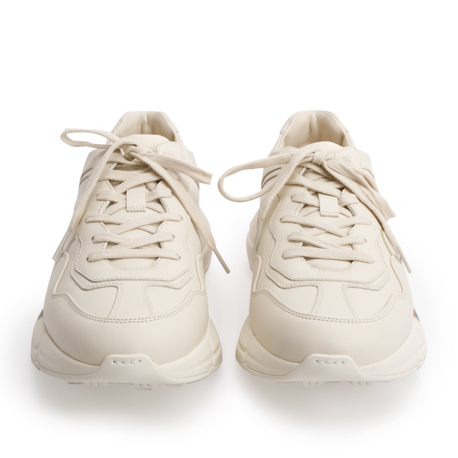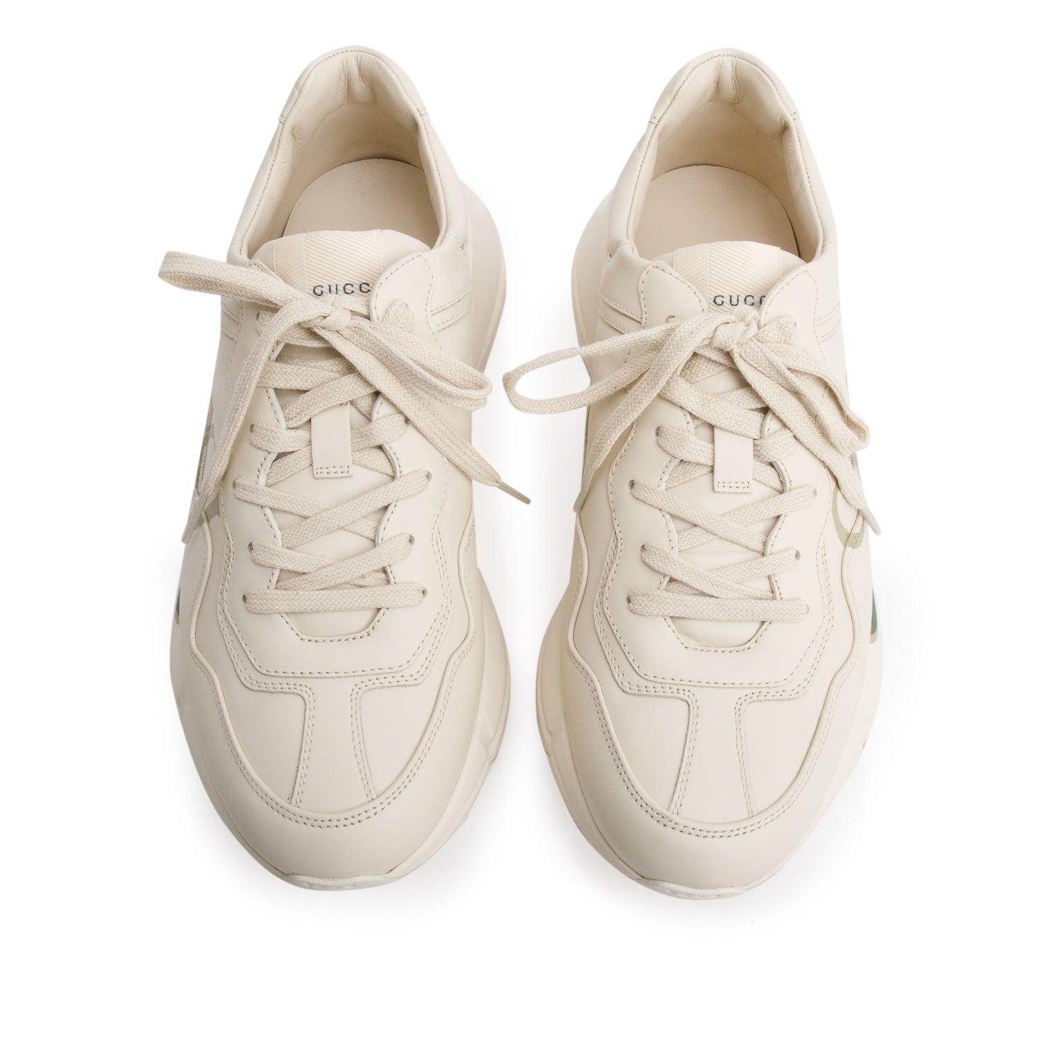 Beige Leather Rhyton Logo Sneakers, Men's Size 8 w/ Box