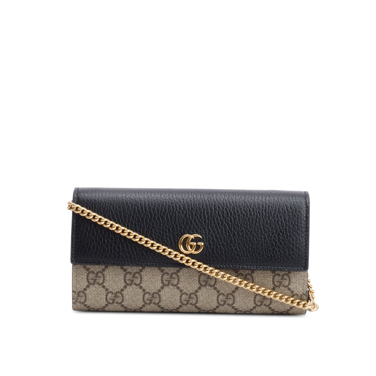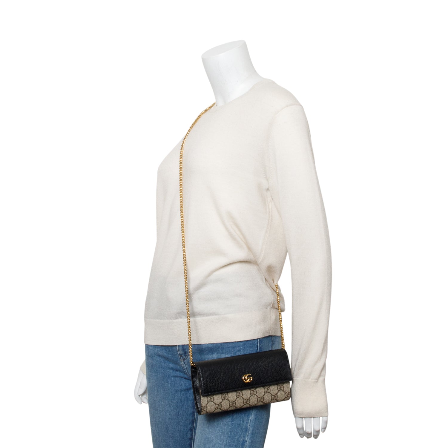 Black Calfskin Leather GG Supreme Marmont Bi-Color Wallet On Chain w/ Box