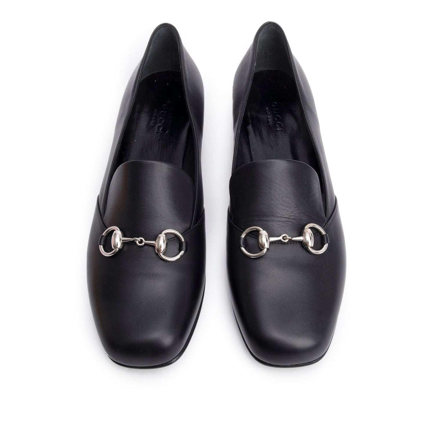 Black Calfskin Leather Horsebit Accent Loafers, Size 40 w/ Box