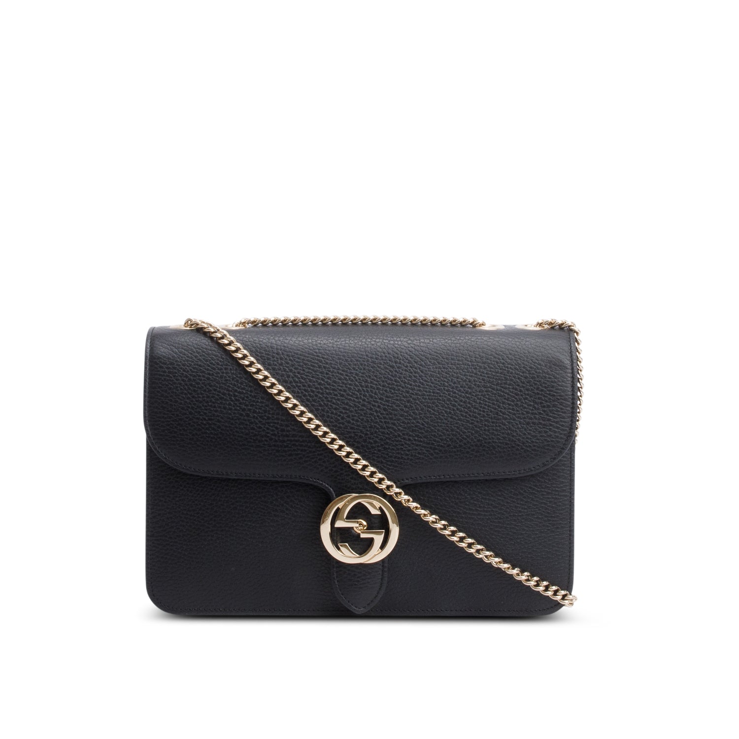 Black Calfskin Leather Medium Dollar Interlocking GG Shoulder Bag
