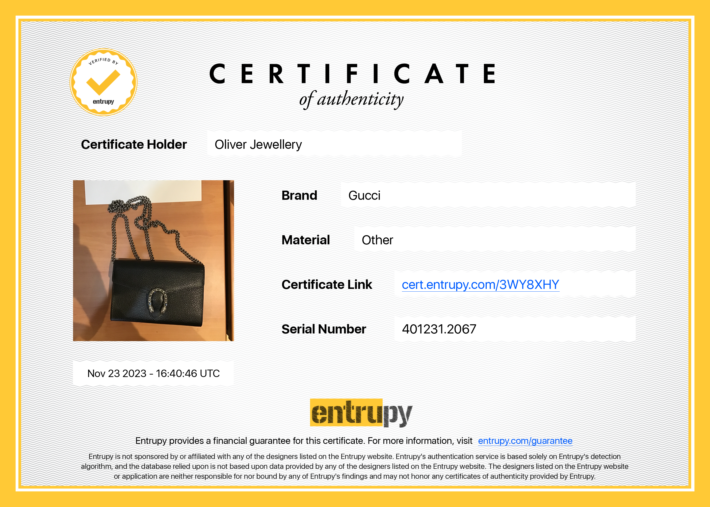 Dust Bag, Booklets, Entrupy Certificate of Authenticity