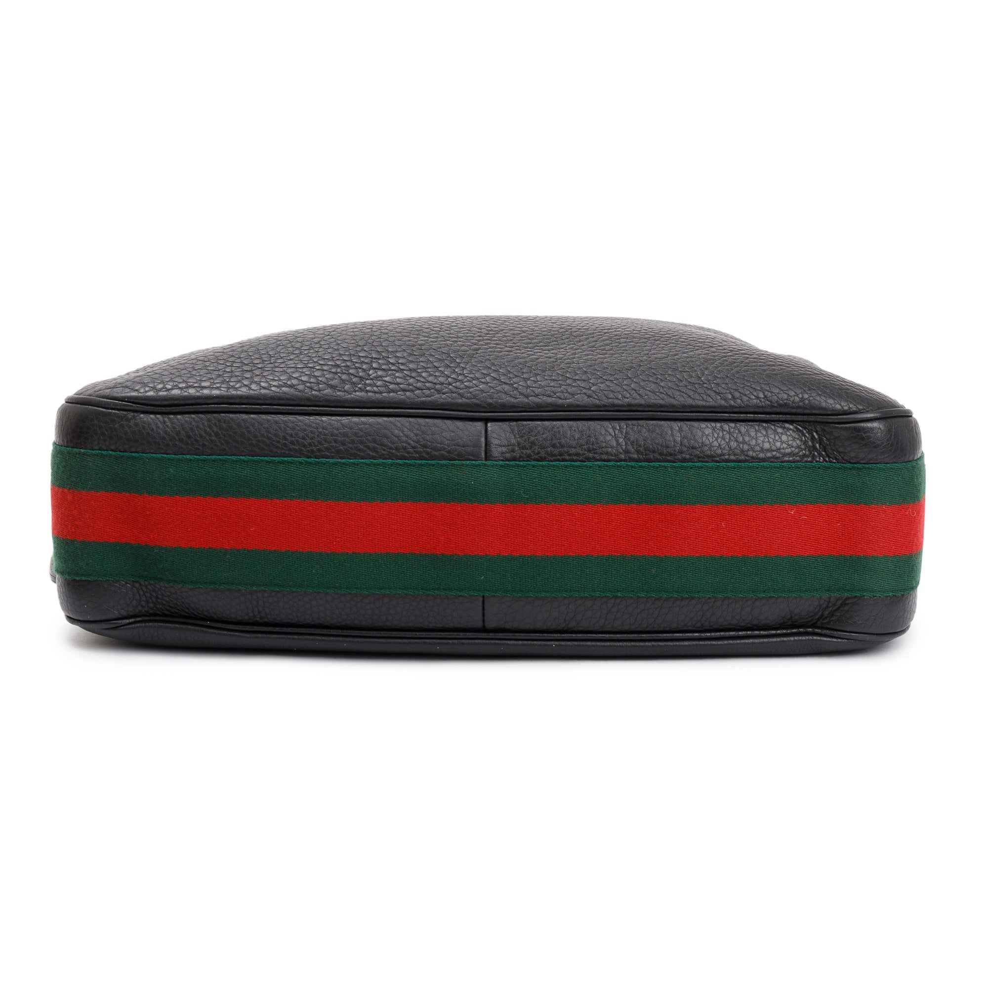 Black Calfskin Leather Web Medium Heritage Shoulder Bag