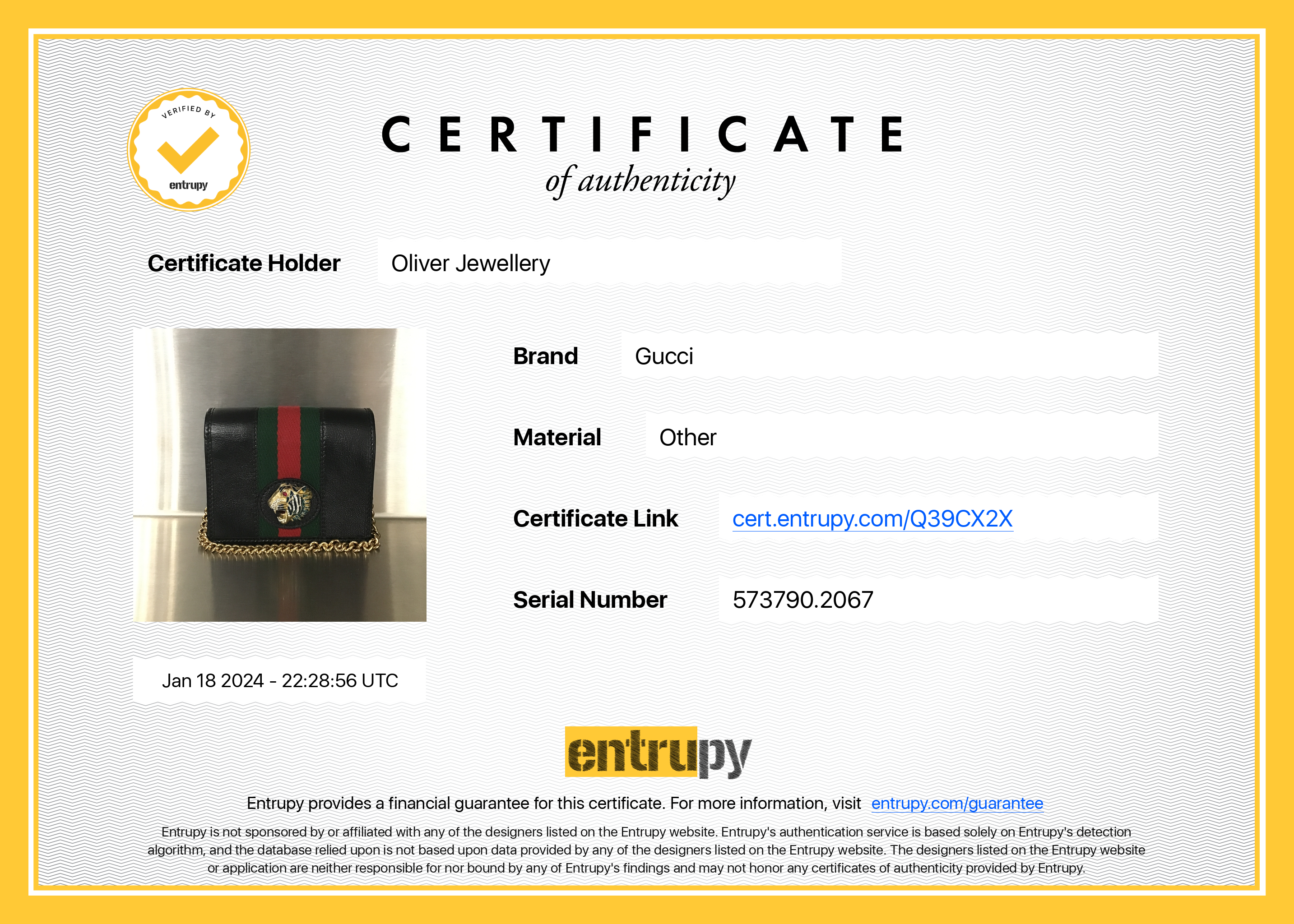 Entrupy Certificate of Authenticity