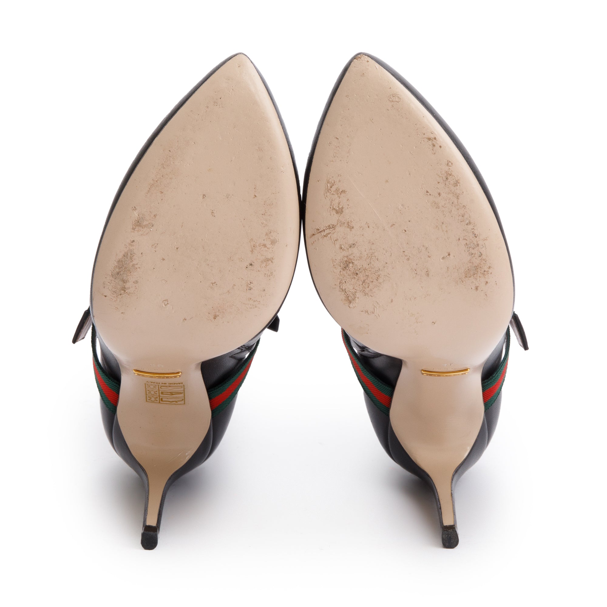 Black Calfskin Leather Web Sylvie Ankle Boots, Size 38