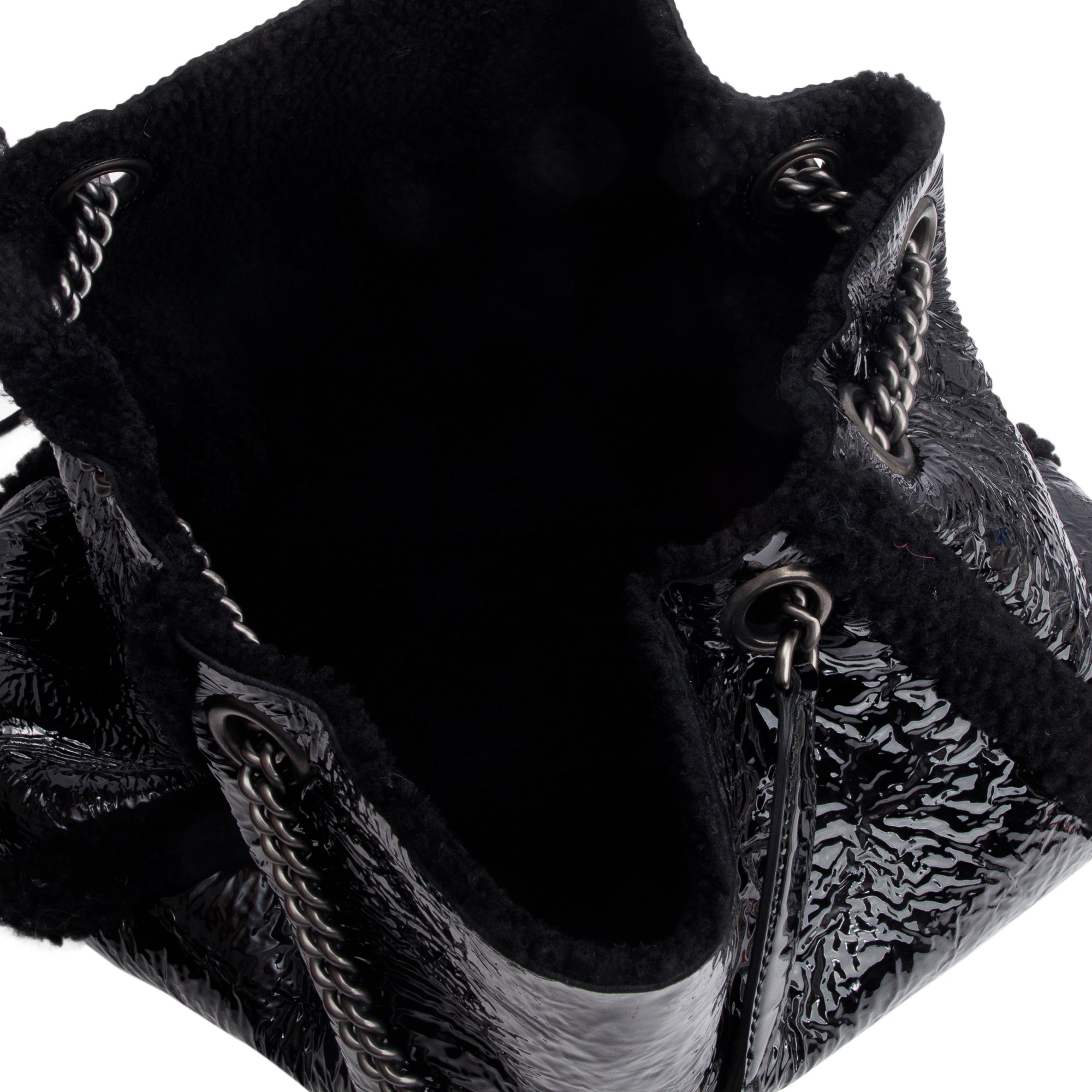 Black Crushed Patent Leather Shearling Trim Medium Soho Chain Tote w/ Pouch