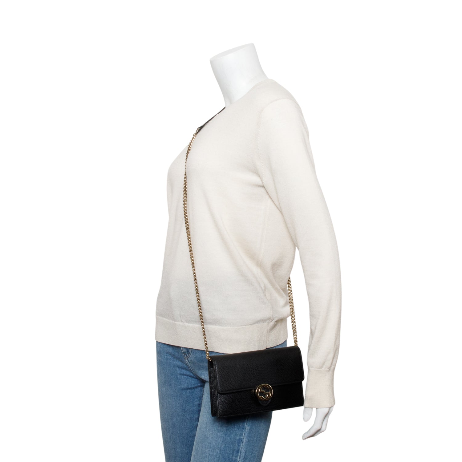 Black Dollar Calfskin Leather Interlocking GG Wallet on Chain