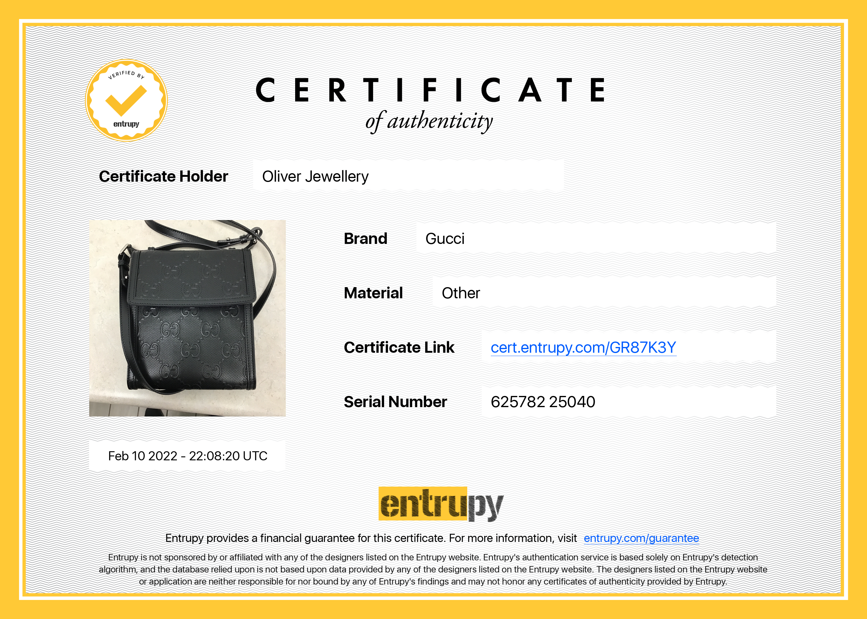 Included Items: Original Gucci Box, Dust Bag & Entrupy Certificate of Authenticity #: GR87K3Y