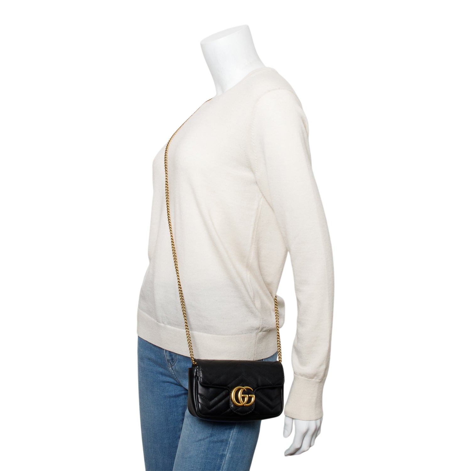 Black GG Marmont Matelasse Leather Super Mini Bag w/ Box