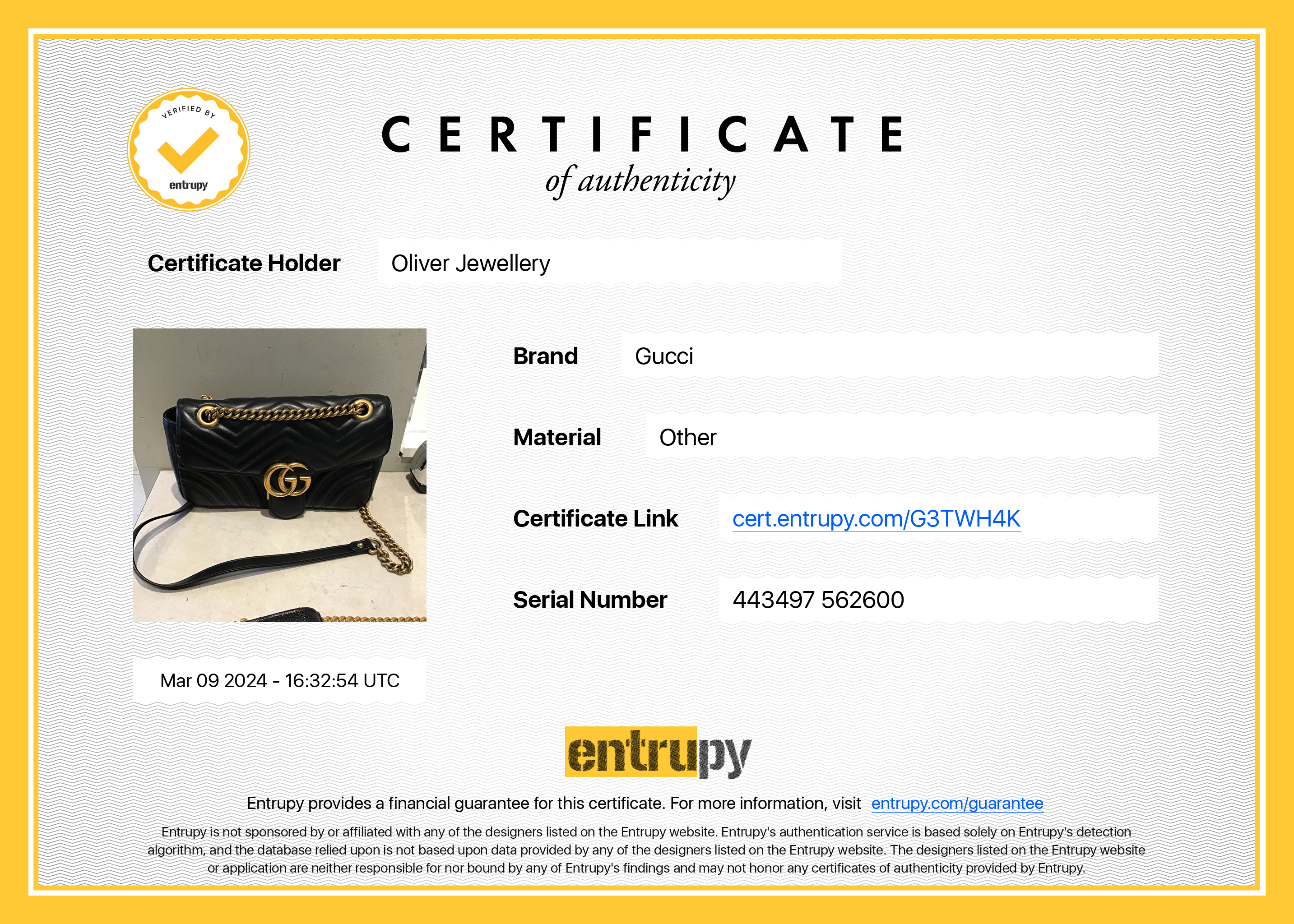 Box, Dust Bag, Booklet, Entrupy Certificate of Authenticity