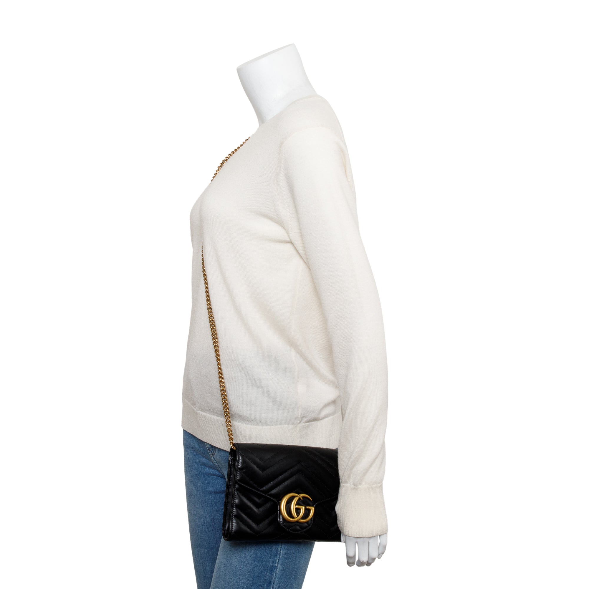 Black GG Marmont Mini Wallet on Chain w/ Box