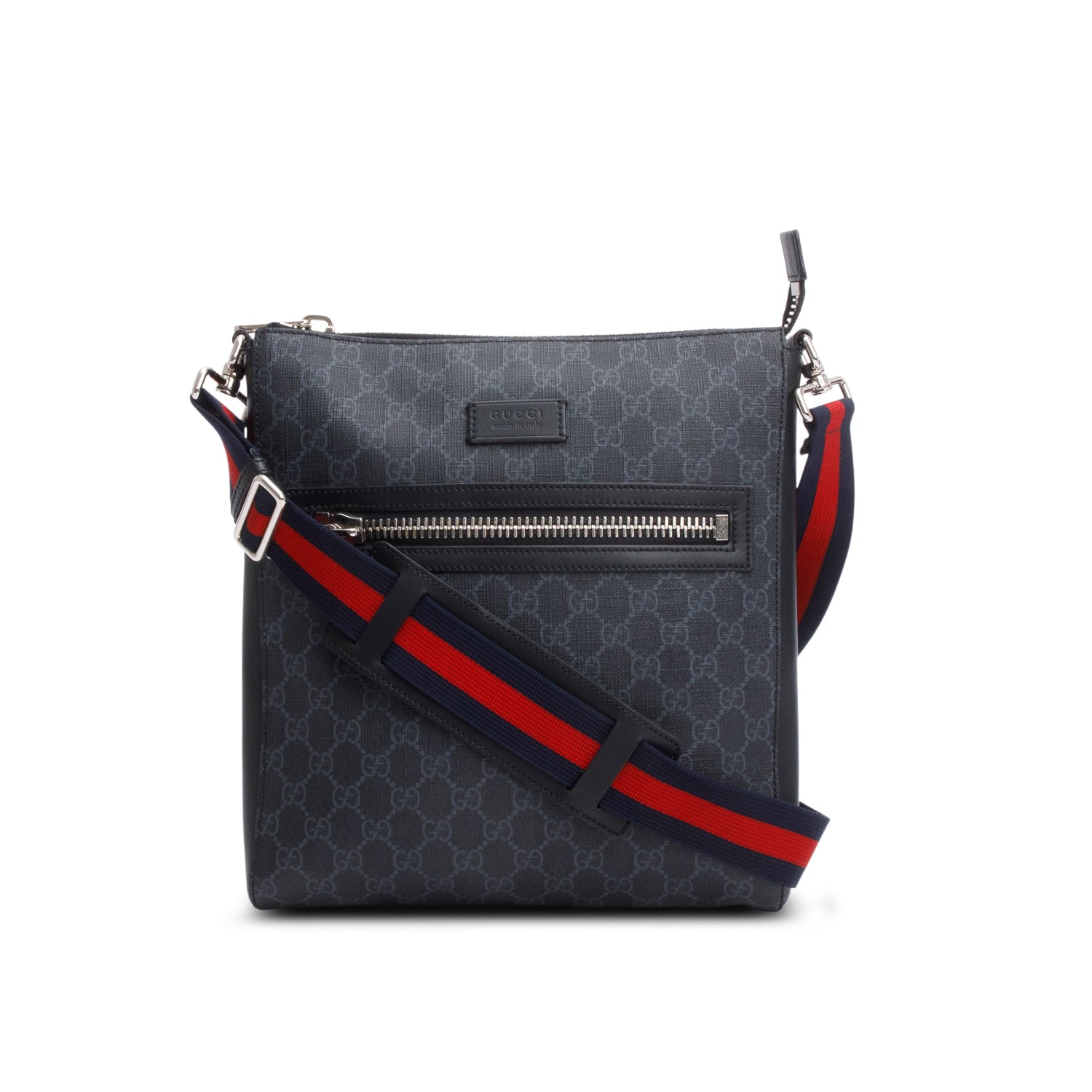Black GG Supreme Canvas Calfskin Messenger Bag