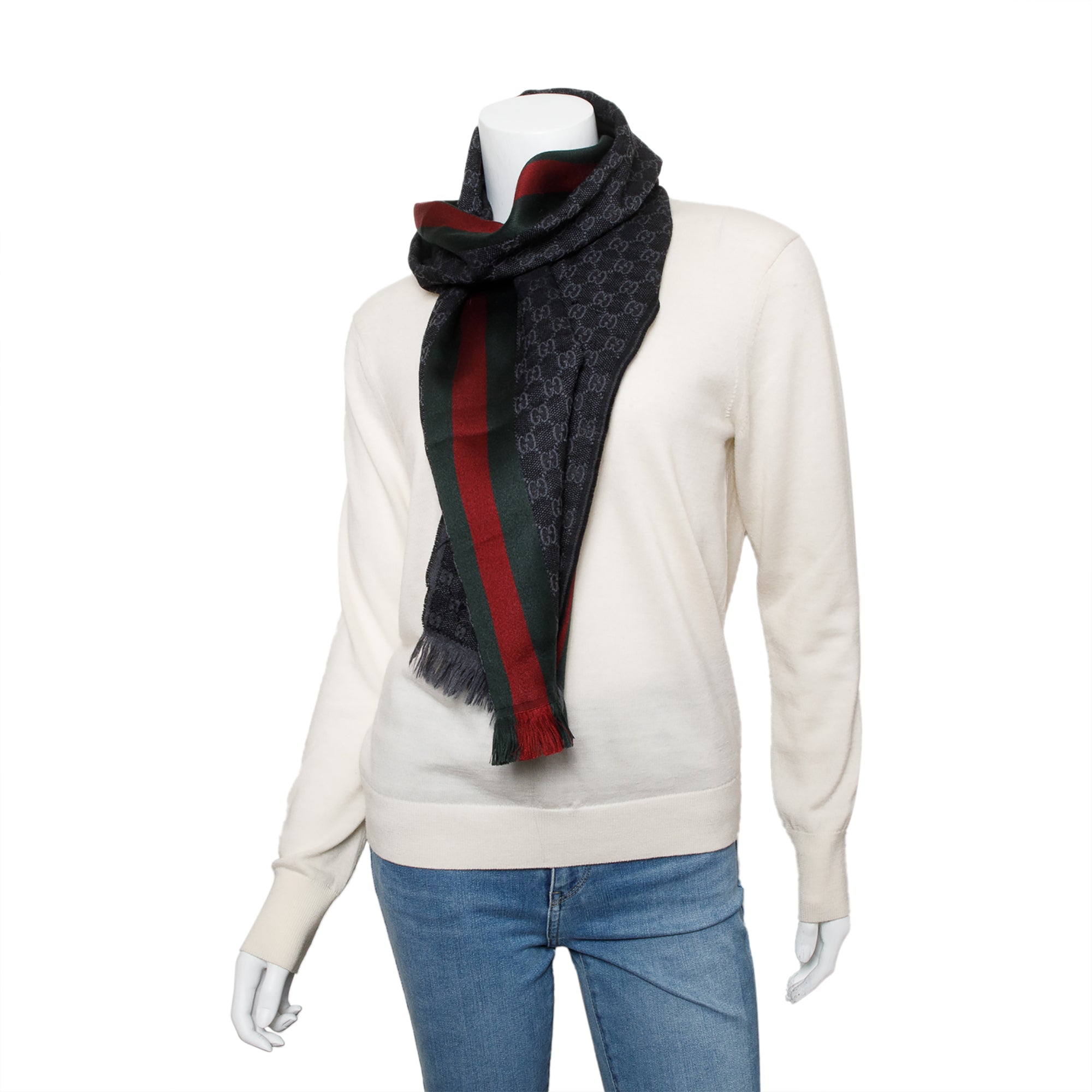 Black/Grey GG Jacquard Web Wool Silk Scarf