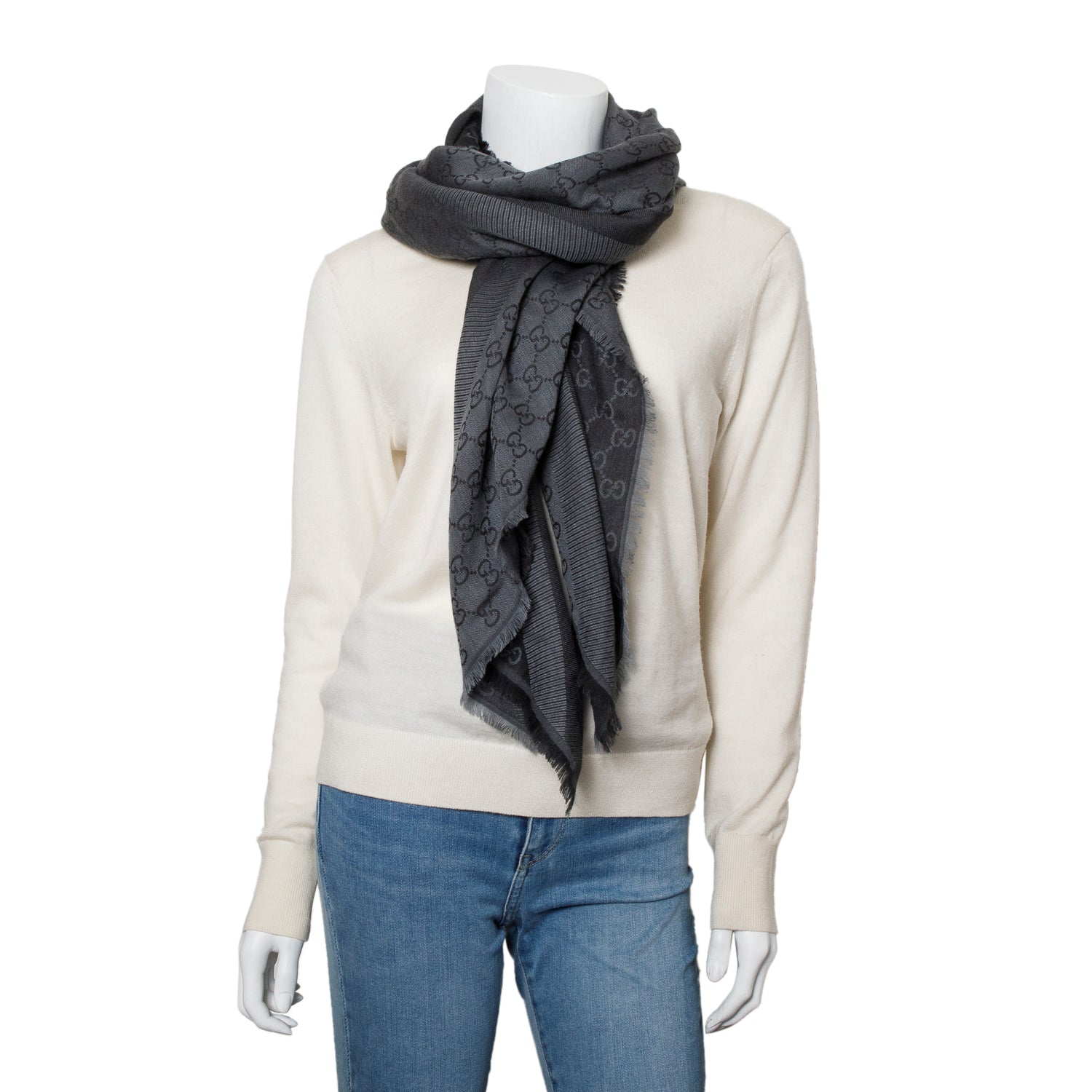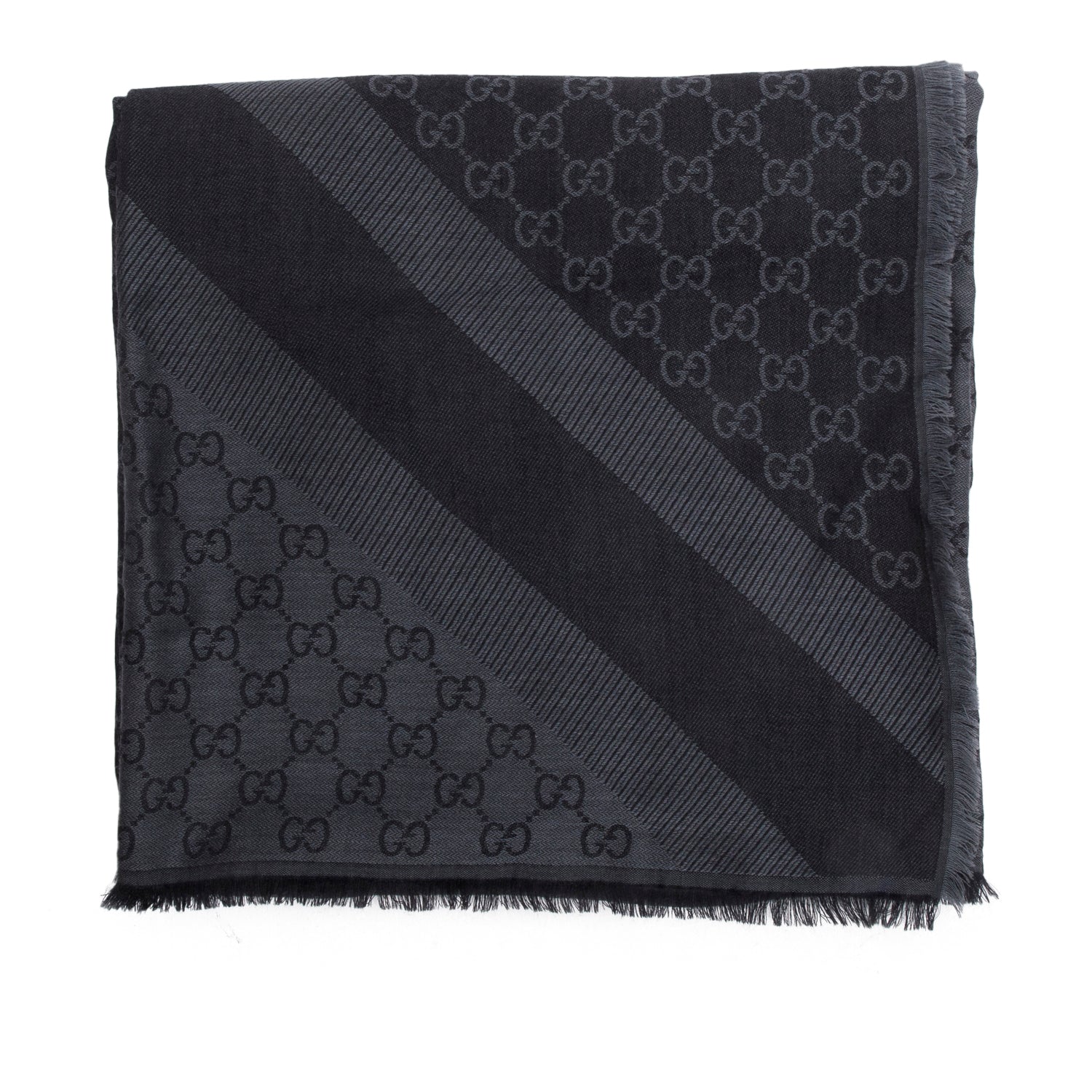 Black/Grey GG Jacquard Wool Silk Shawl Scarf w/ Box