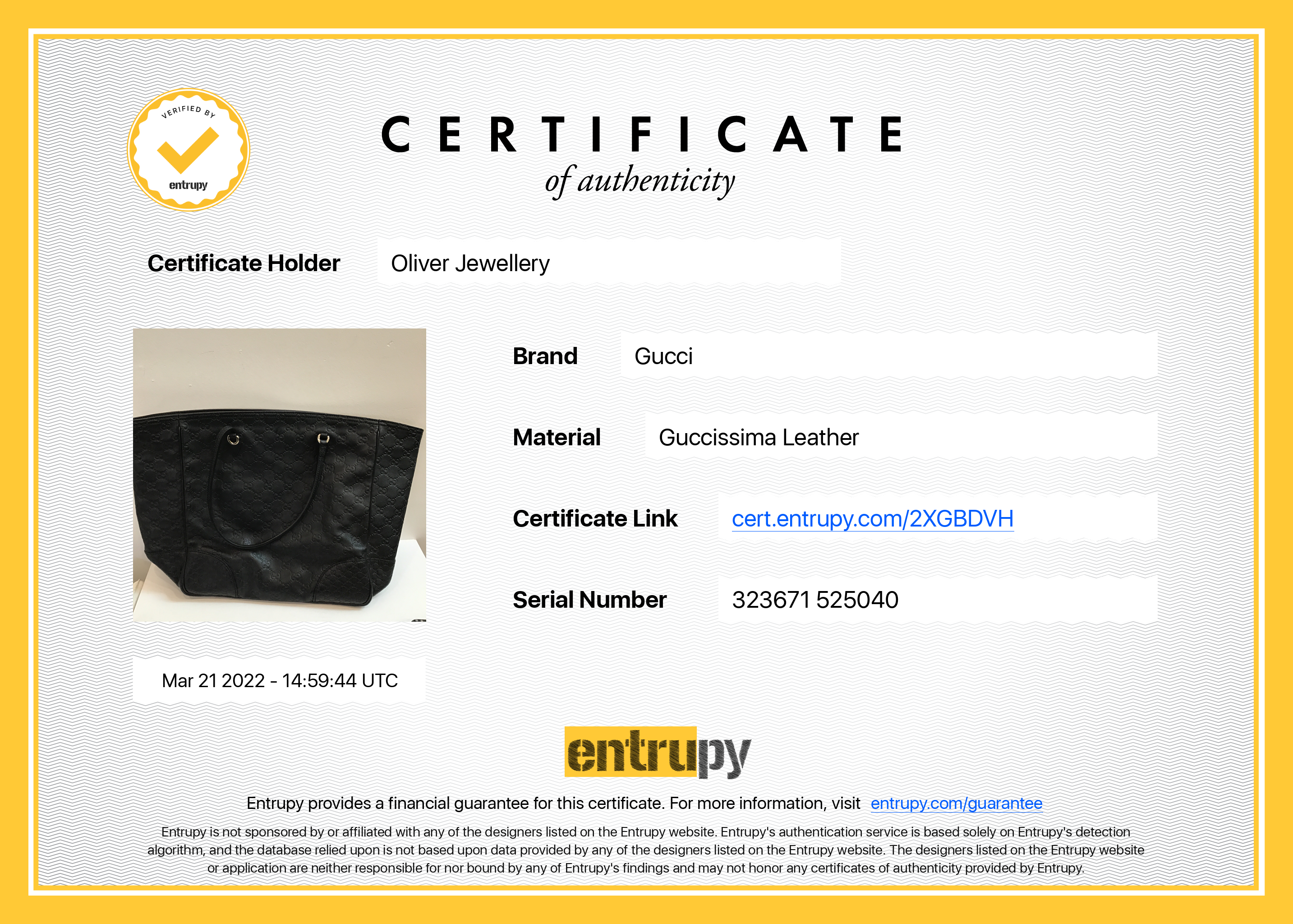 Included Items: Entrupy Certificate of Authenticity #: 2XGBDVH