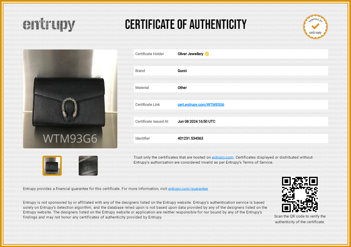 Receipt, Dust Bag, Chain-Link Strap, Enturpy Certificate of Authenticity