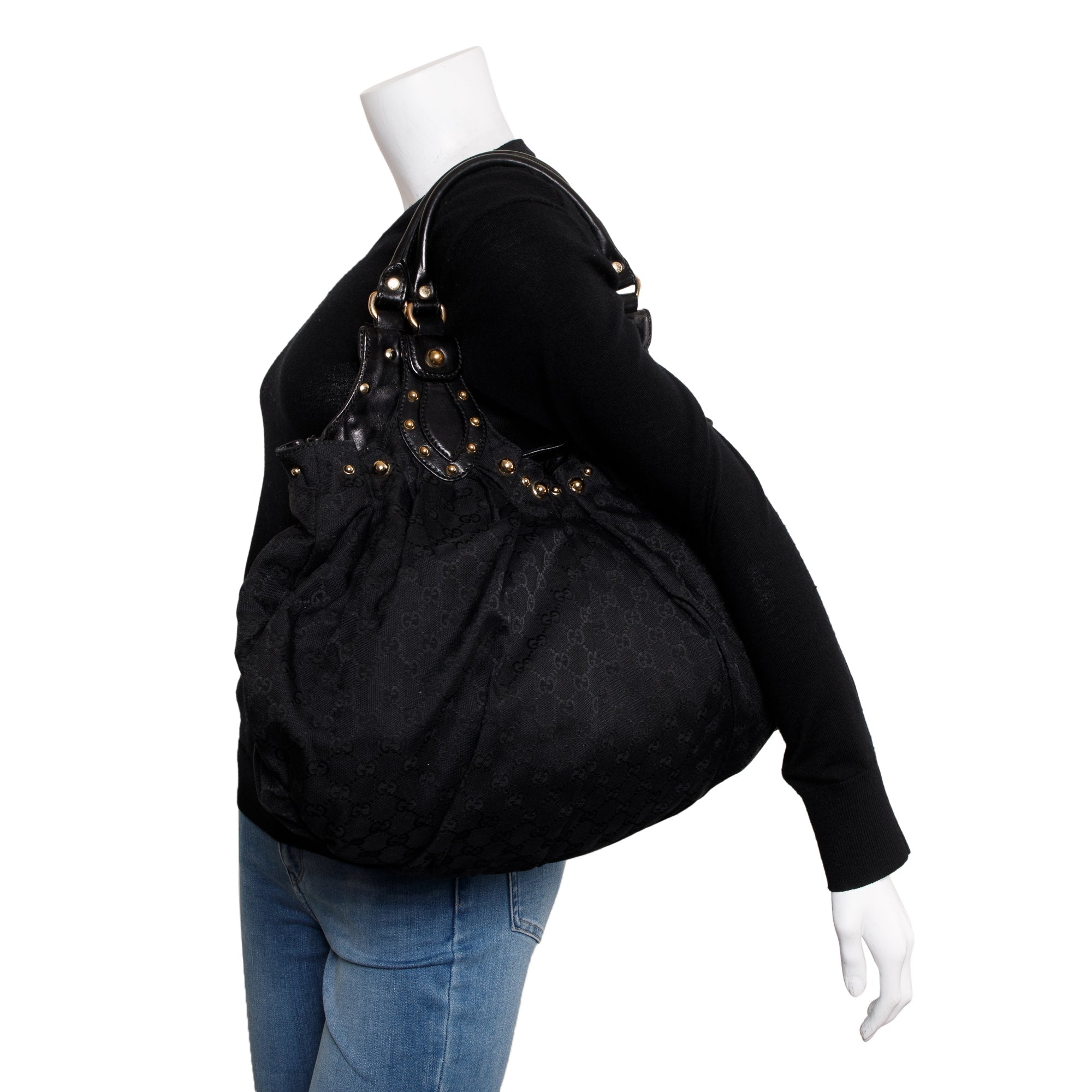 Black Leather GG Canvas Medium Studded Pelham Bag
