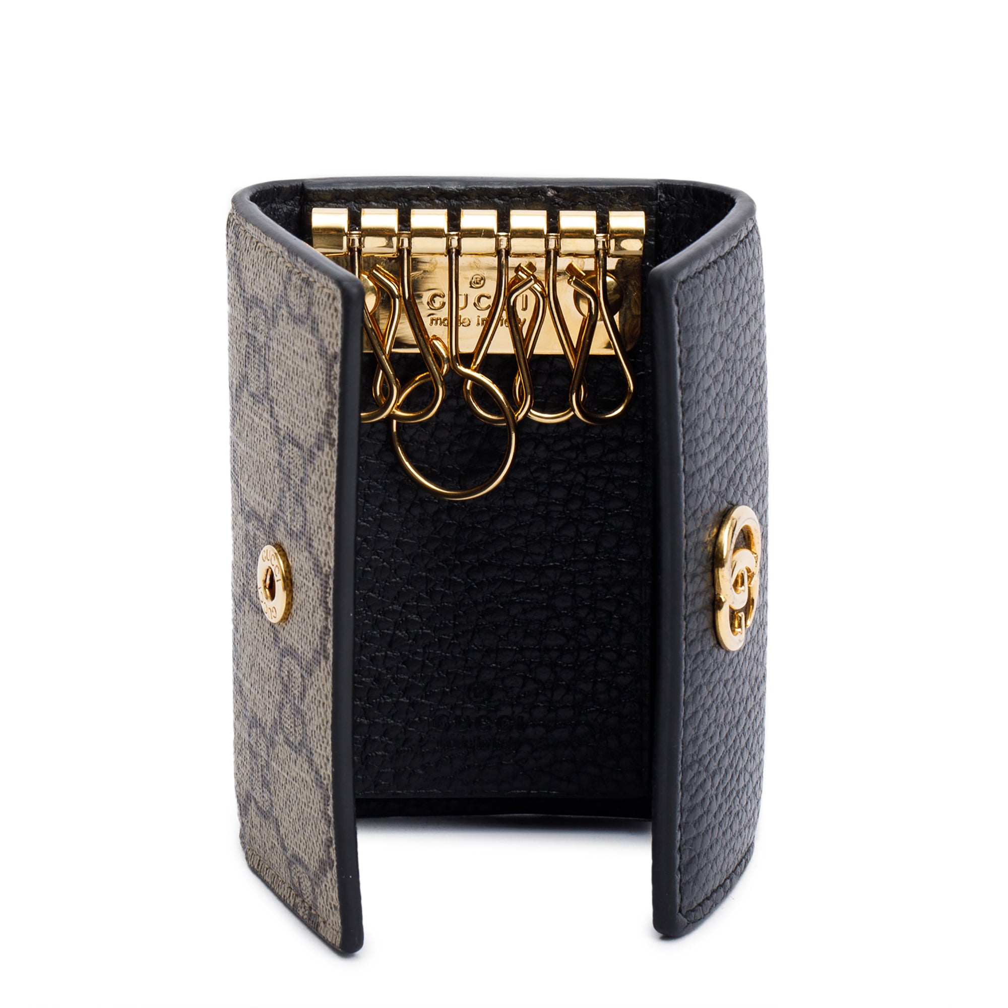 Black Leather GG Supreme GG Marmont 6 Key Case