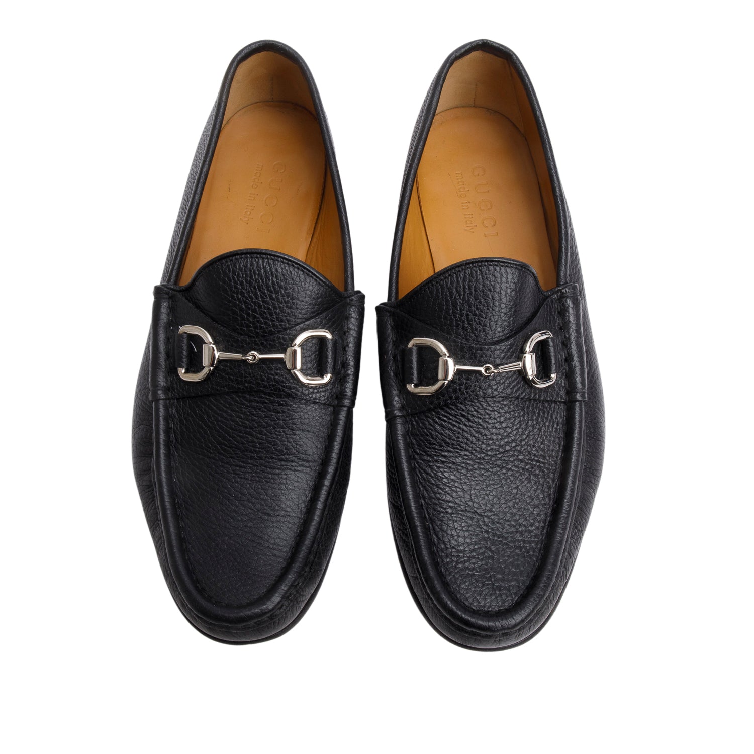 Black Leather Horsebit 1953 Accent Drive Loafers, Men's Size 7.5