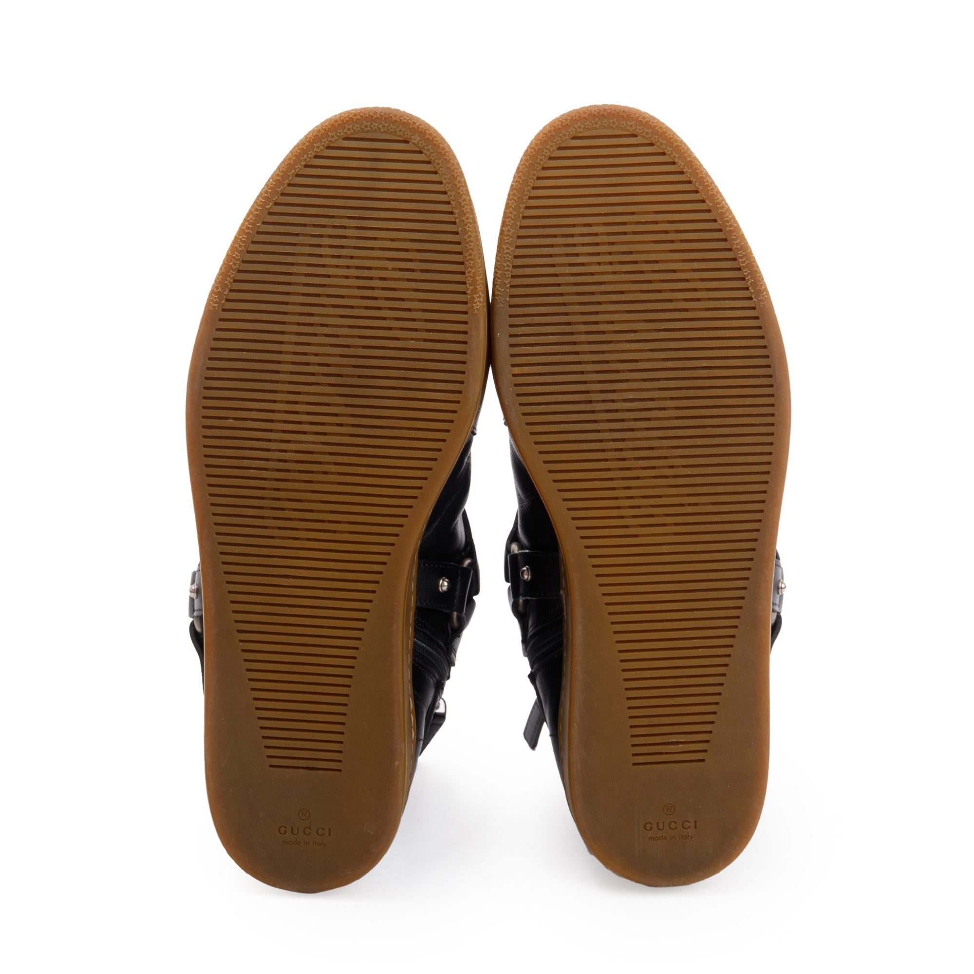Black Leather Horsebit Accent High Top Sneakers, Size 8.5 w/ Box