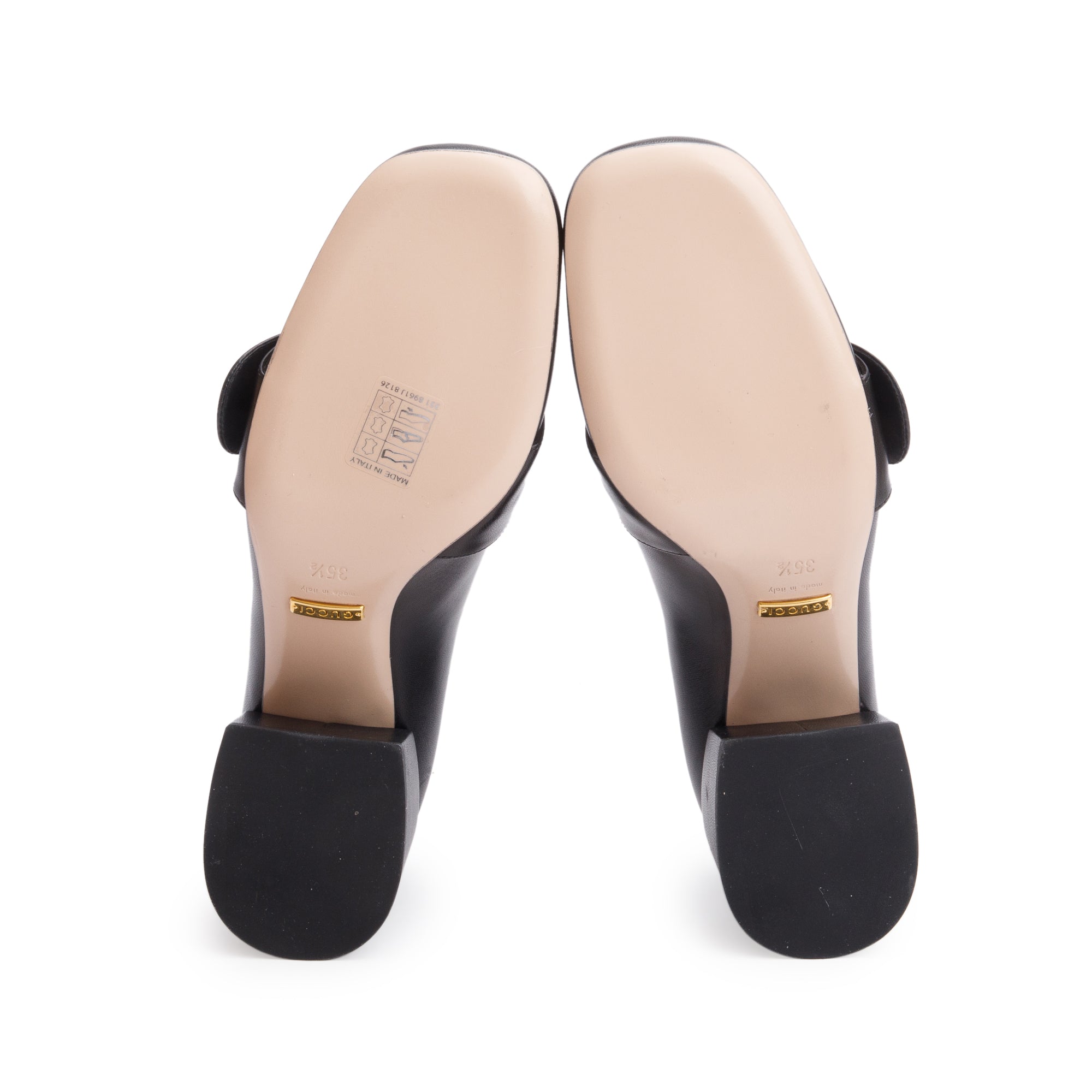 Black Leather Interlocking G Logo Pumps, Size 35.5