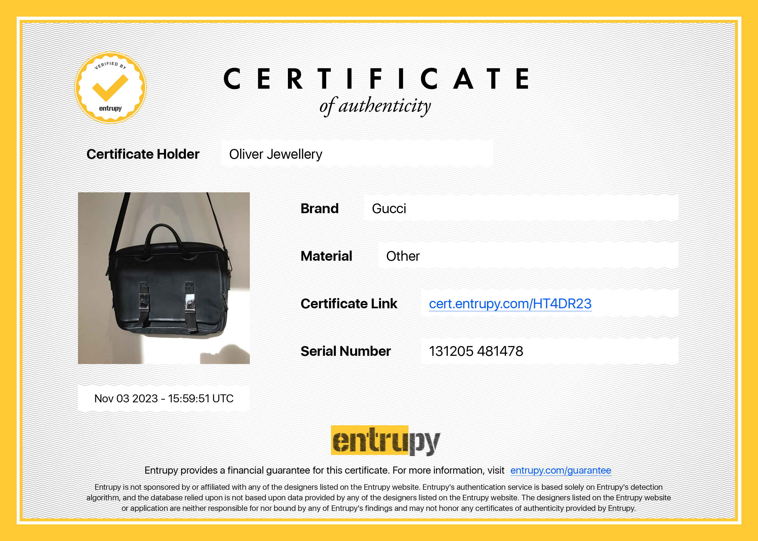 Dust Bag, Detachable Shoulder Strap, Entrupy Certificate of Authenticity