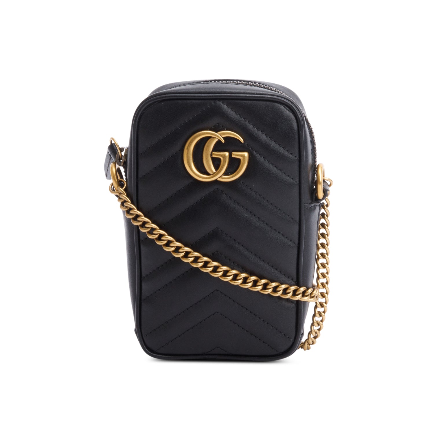 Black Matelasse Calfskin Leather Mini GG Marmont Crossbody Bag