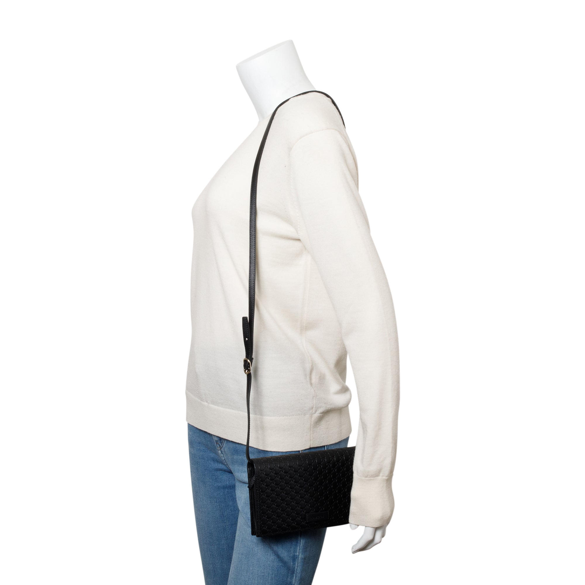 Black Microguccissima Leather Wallet on Strap
