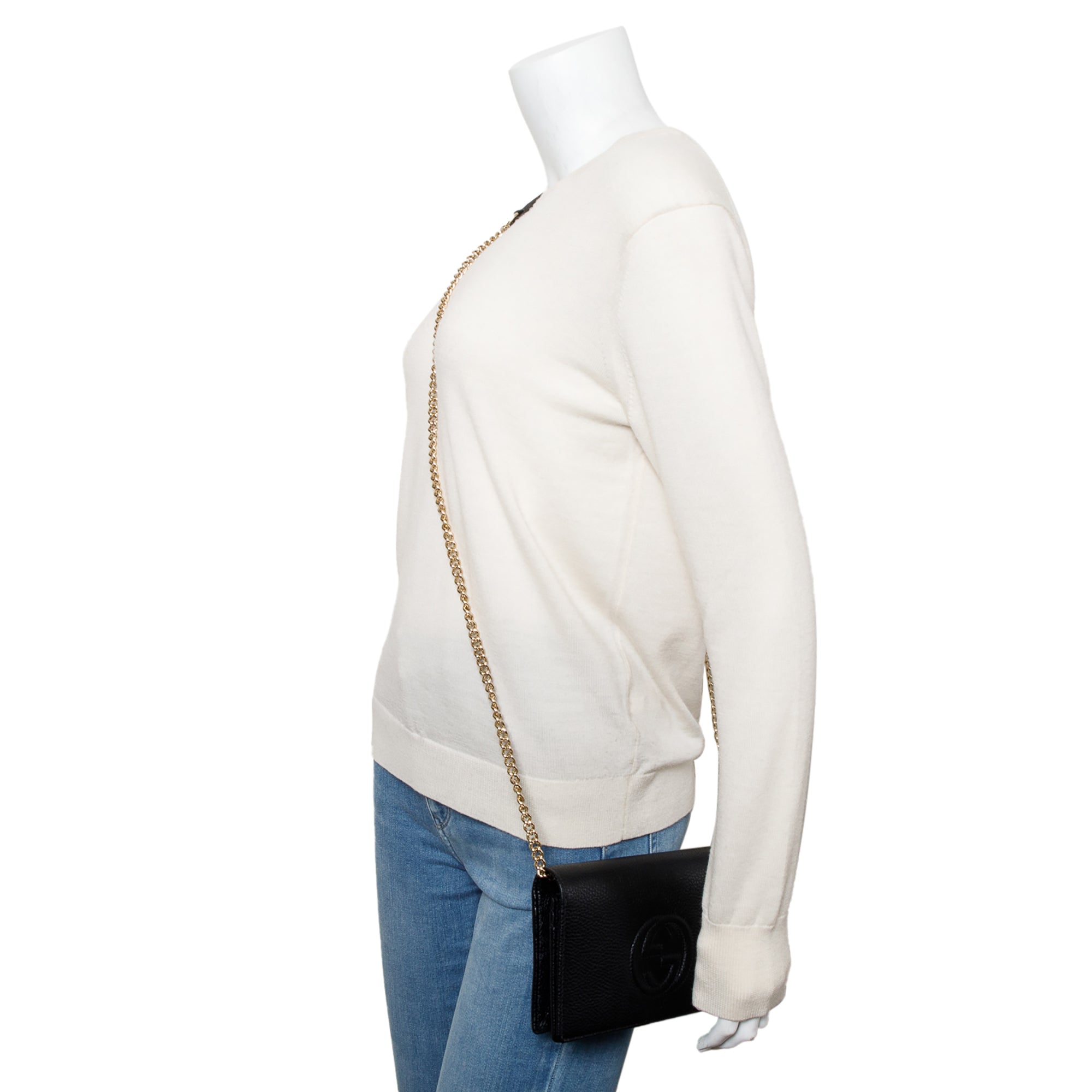 Black Pebbled Calfskin Soho Wallet On Chain w/ Box