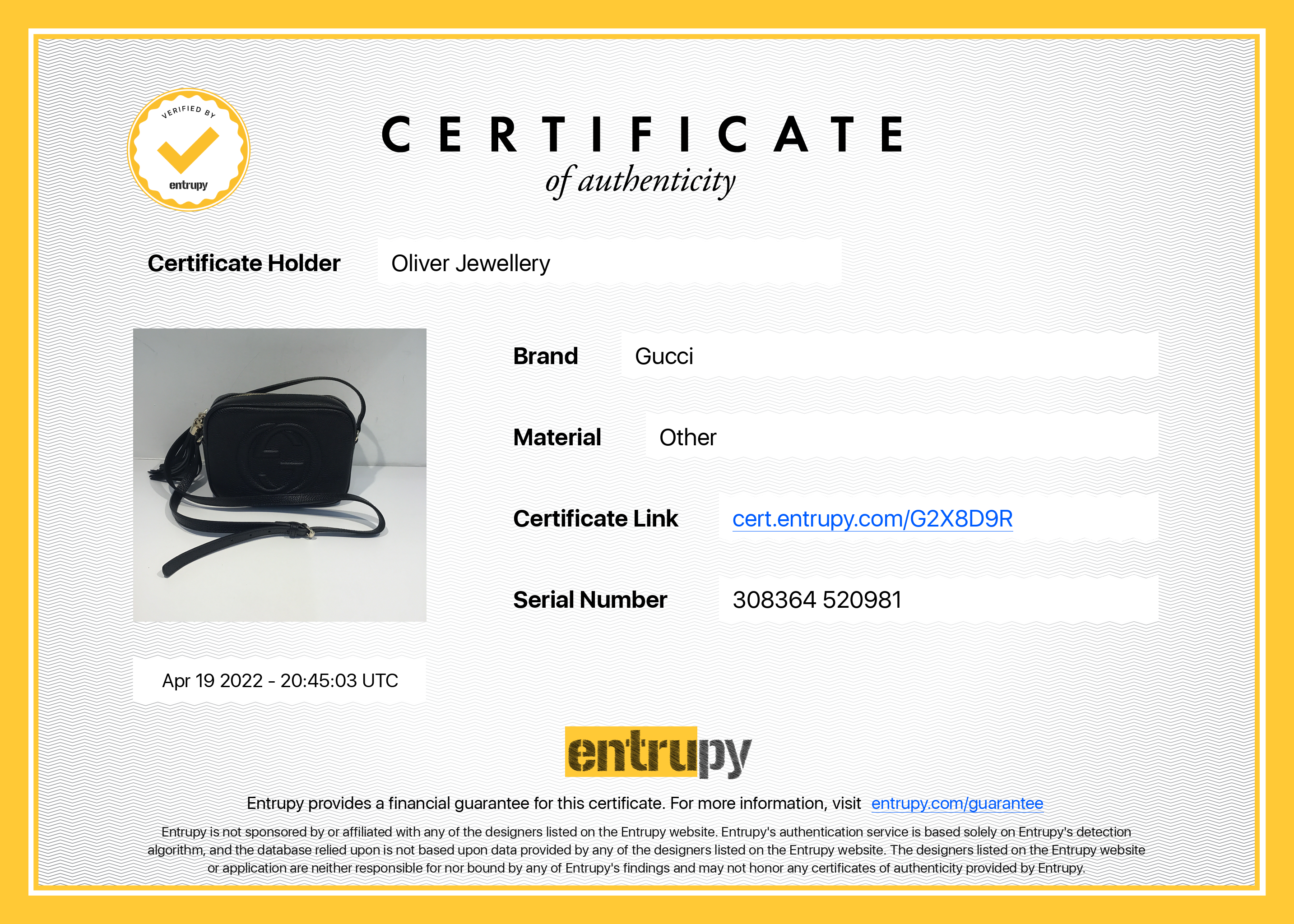 Included Items: Original Gucci Dust Bag, Booklet & Entrupy Certificate of Authenticity # : G2X8D9R