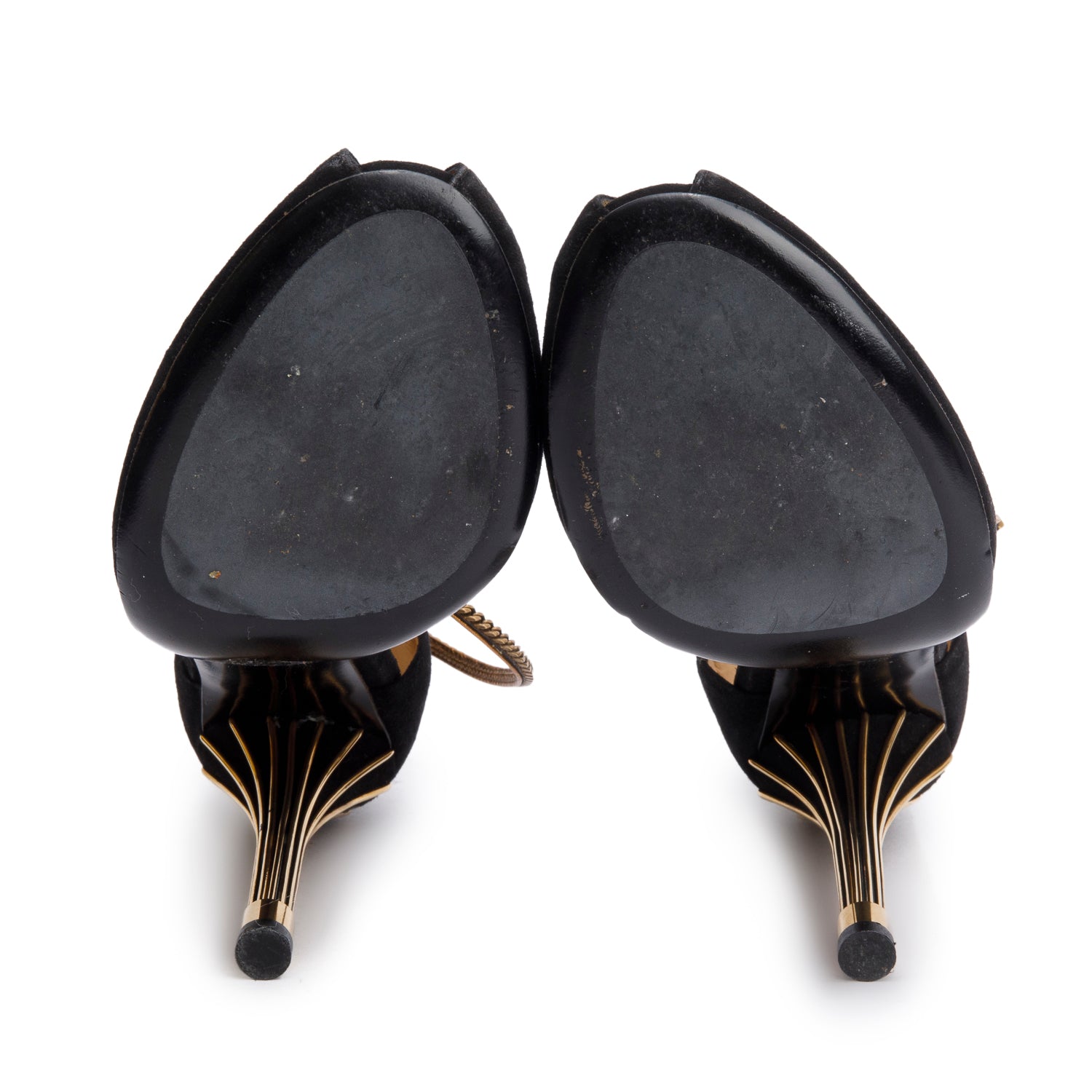 Black Suede Chain Accent Ophelie Ankle Wrap Pumps, Size 39