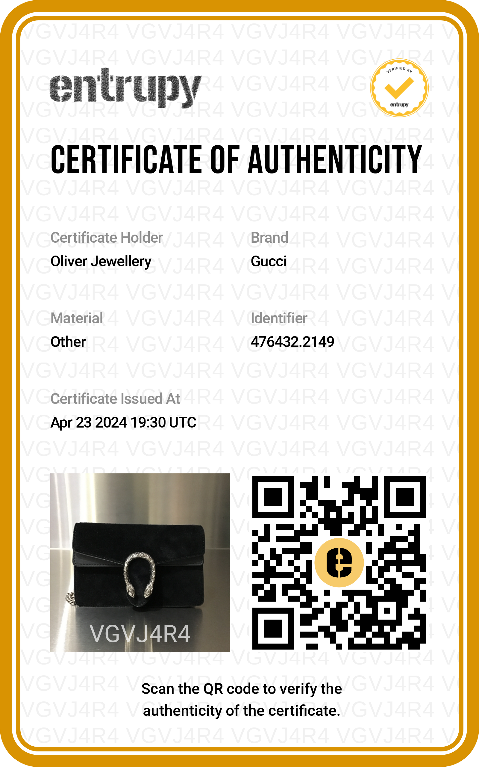 Dust Bag, Chain Link Strap, Key Chain, Entrupy Certificate of Authenticity